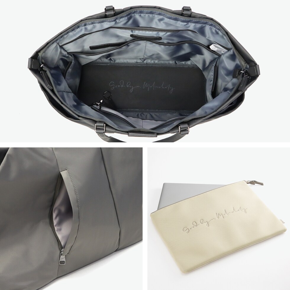 こんなの欲しかった!を形にした、バッグシリーズ『Sukku/スック』。こちらは、収納力抜群のトートバッグです。荷物が多い方にも安心の26L容量。大きくて荷物がザクザク入れられる、多機能サイドポケットが魅力。ポケット内部にもミニポケットがあるので、鍵やIDケース、リップなどこまごまとしたものを出し入れしやすく考え抜かれた使いやすさ。PCケースや着替え収納などにも使える、クッション性のあるフラットポーチ付きです。通勤から出張、ジムやママバッグまで、毎日を支えてくれる万能バッグです。