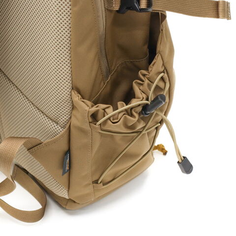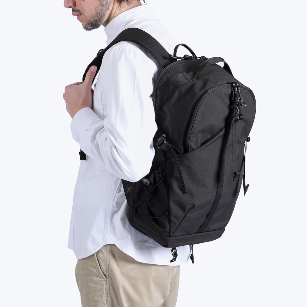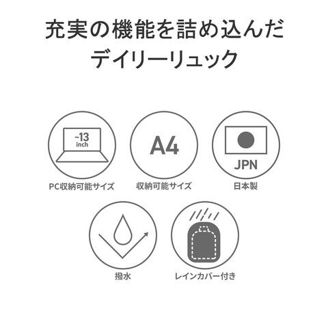 | 充実の機能を詰め込んだ デイリーリュック フロントポケットが特徴的なデイパック。A4ノートや13インチPCが収まる便利なサイズで、デイリー使いに最適です。フロントからマチまでの大きなポケットは、バックルベルトやゴムコードを調節することで、携帯などの小物からジャケットや靴といった大きなアイテムまで収納可能。表生地には撥水機能を備えた素材を採用し、ボトムポケットには雨天時でも安心なレインカバーが付属。様々なシーンに対応できるギミックがうれしいポイントです。 |