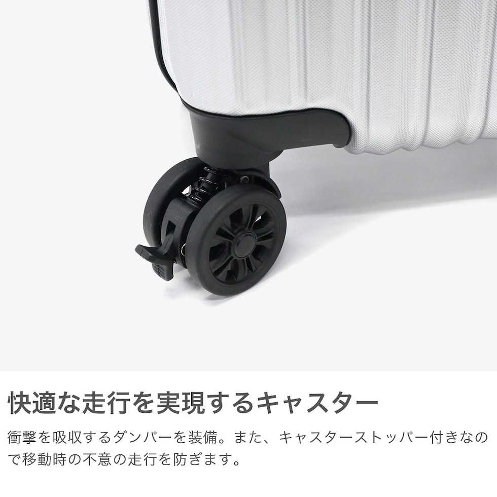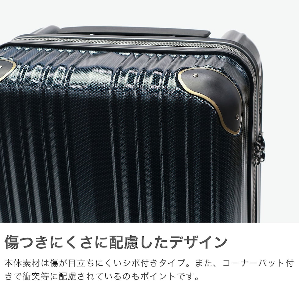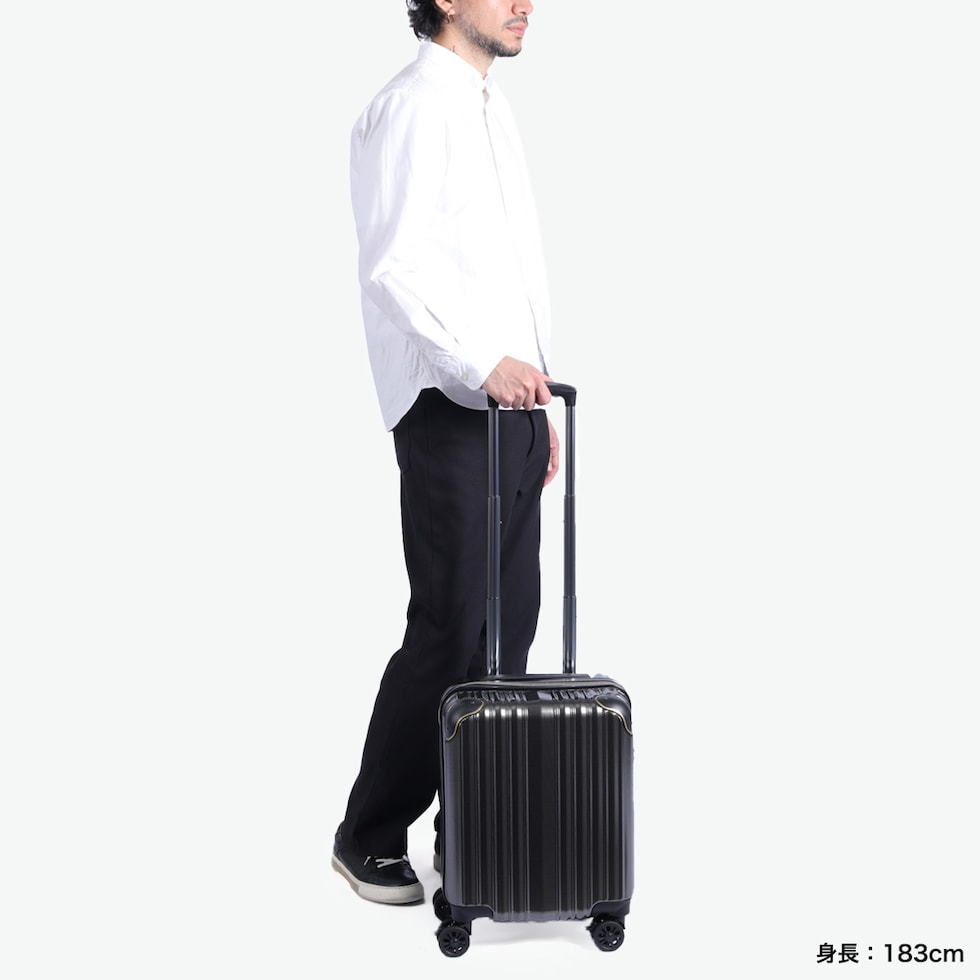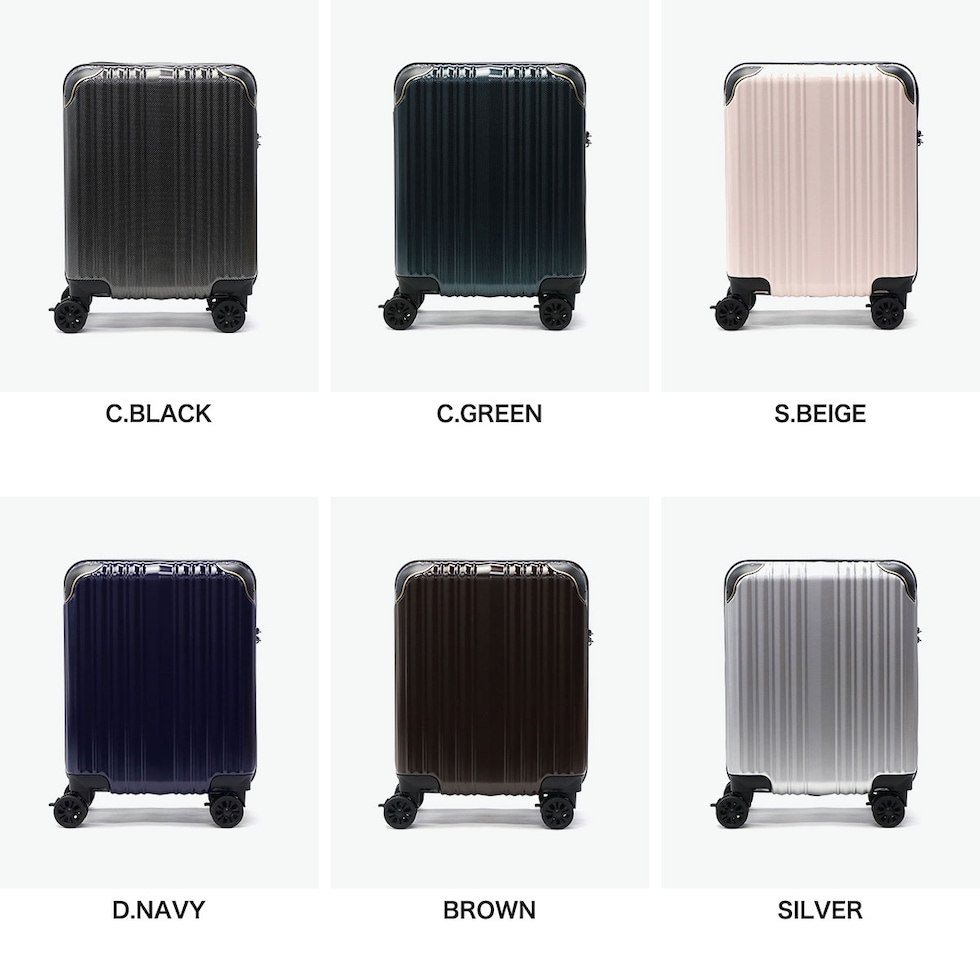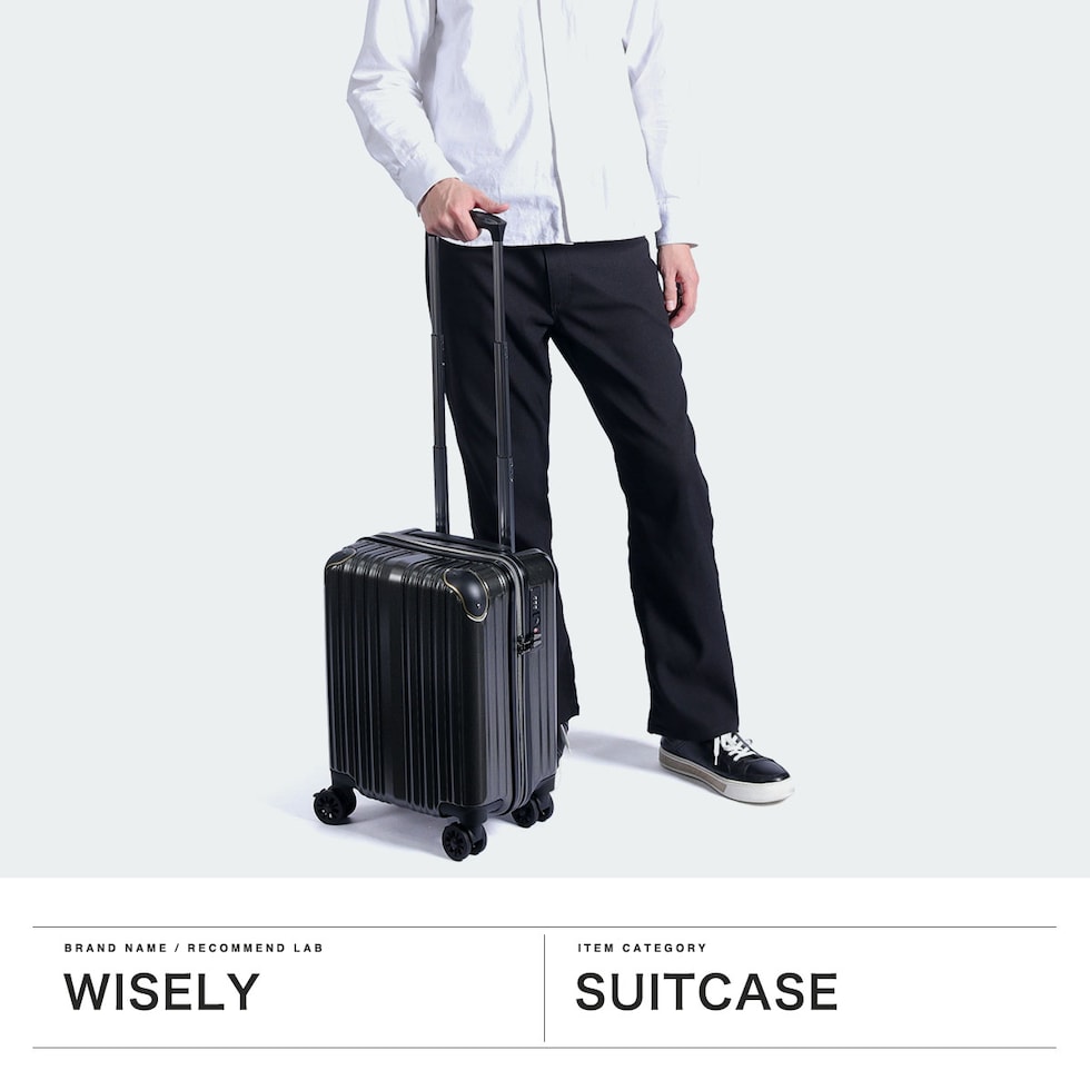 | 充実の機能性を備えた コンパクトキャリー 複雑に変化する時代の傾向やニーズに応え、革新的なデザインと価値ある商品作りを追求し続ける『wise:ly』。こちらスーツケースは、小型のコインロッカーに収まる27L容量サイズです。ボディ全体は傷が目立ちにくいシボ加工を施し、コーナーパッドを装備することで衝撃からしっかりと保護します。また、後輪にはストッパーが付いており、使い勝手と安定性を両立。機能性とデザイン性に優れた仕上がりとなっています。 |
