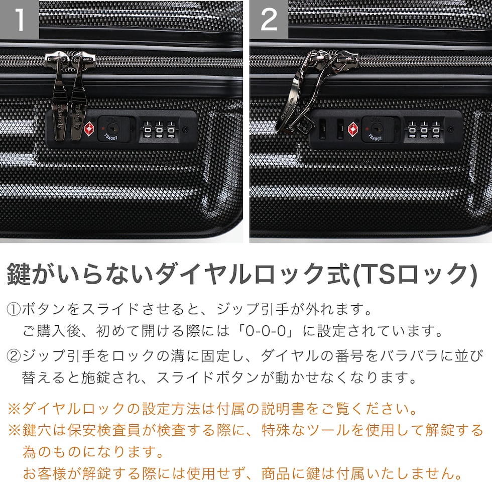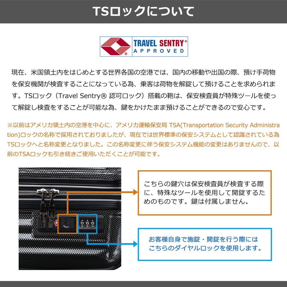 | TSAロック | あり ※TSAロックについて |