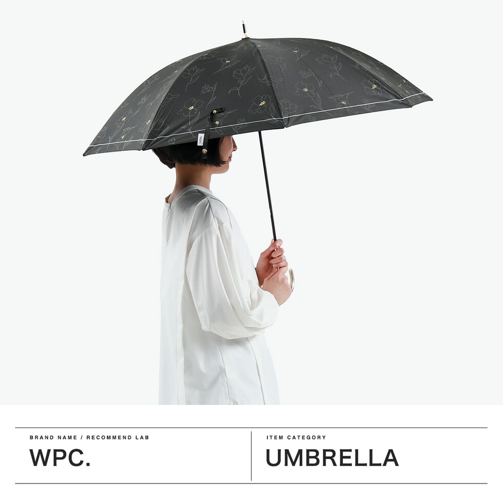 Wpc. 日傘 長傘 晴雨兼用 ダブリュピーシー レディース 傘 UVカット率100% 花柄 手動 遮光率100% 遮光 遮熱 完全遮光 大きめ ブルーライトカット UPF50+ 紫外線対策 55cm 遮光フラワードローイング 81-12623