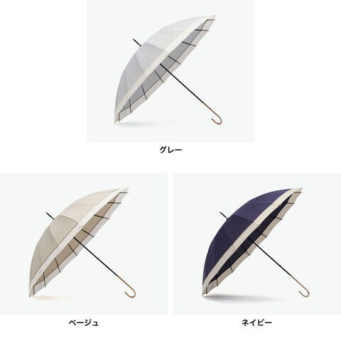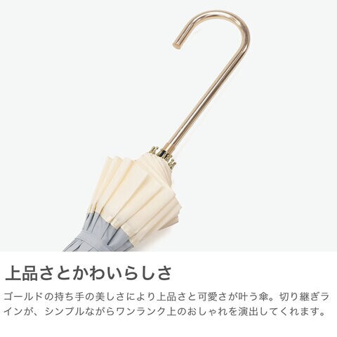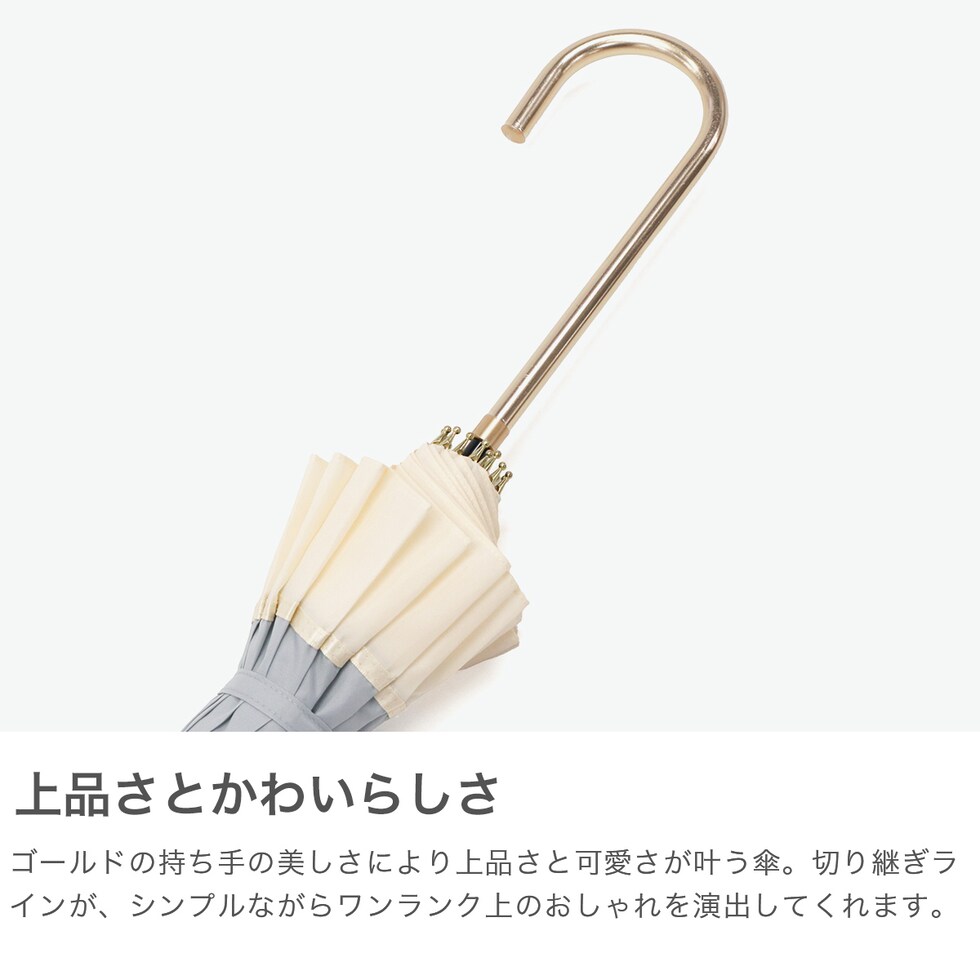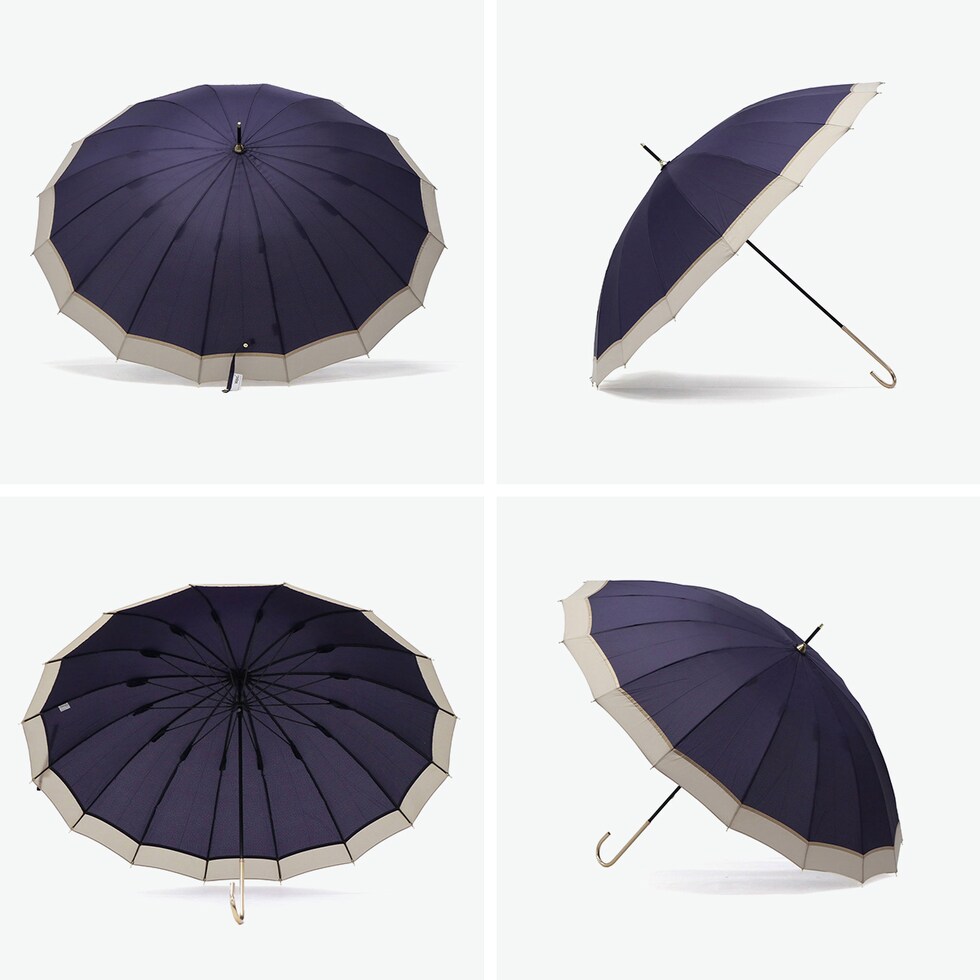 機能性をひとつに どんなファッションにも合わせやすい、落ち着いたカラーリングの長傘『16K PATCHWORK LINEAR』。ゴールドの持ち手が、エレガンスをさらにプラスしています。上品かつ華奢なデザインながら、16本の親骨が耐風性&耐久性をアップ。雨の日も晴れの日も快適なひとときを提供します。 |