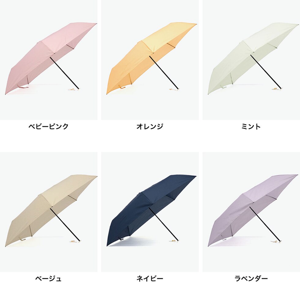 | 鞄に一本入れておきたい スッキリスリムな軽量傘 驚きの軽さで大人気の『AIR-LIGHT UMBRELLA』が親骨55cmの大きめサイズになって登場。重さ約115gで、傘をさしていても、かばんの中に入れている時も負担にならない超軽量傘です。淡いトーンの無地パステルカラーは、ファッションや気分に合わせてチョイスすることができます。 |