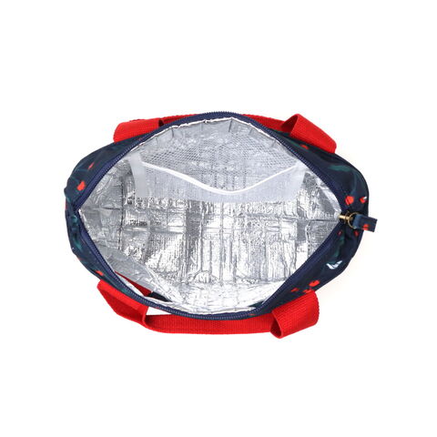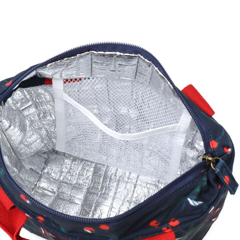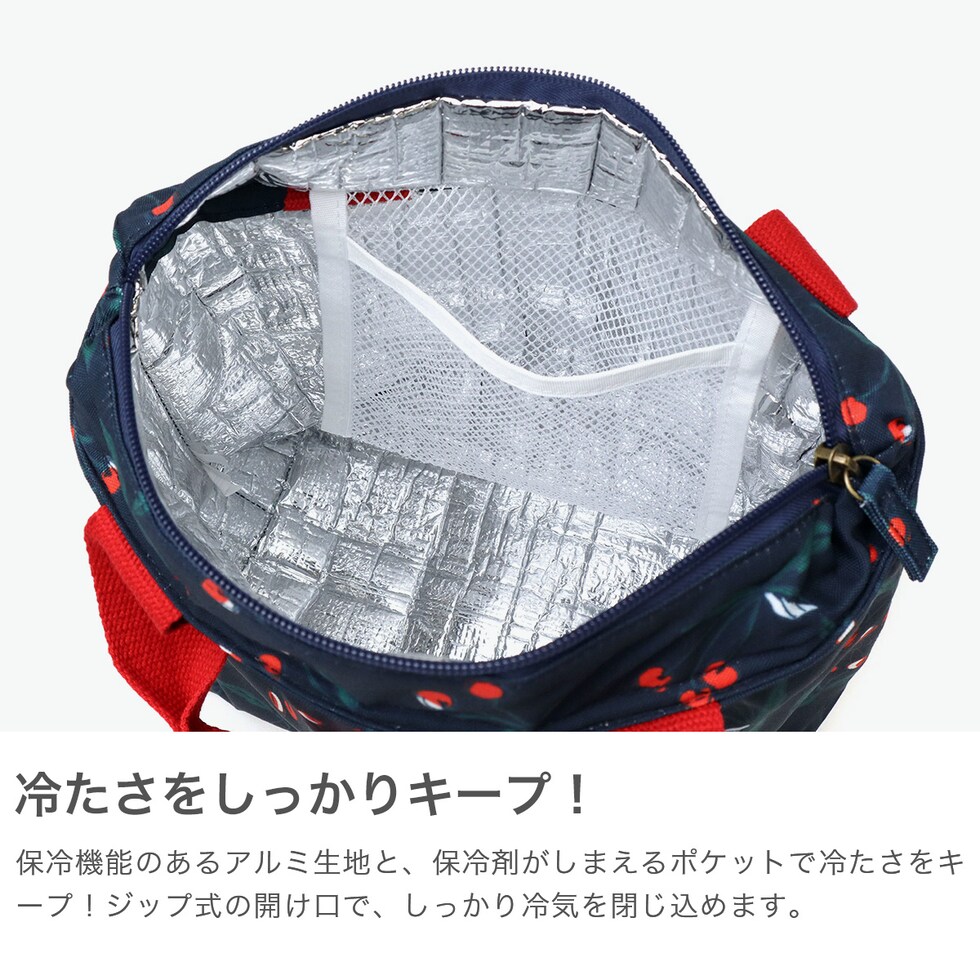 マチが広く、お弁当箱やペットボトルの収納にぴったりな保冷ランチバッグ。保冷機能のあるアルミ生地と保冷剤ポケット付きで冷たさをキープし、ファスナーでしっかりと閉じられます。生地には撥水加工を施し、水滴や汚れがつきにくくお手入れも簡単。カラフルで鮮やかな花柄が、毎日のランチタイムを華やかに彩ってくれます。
