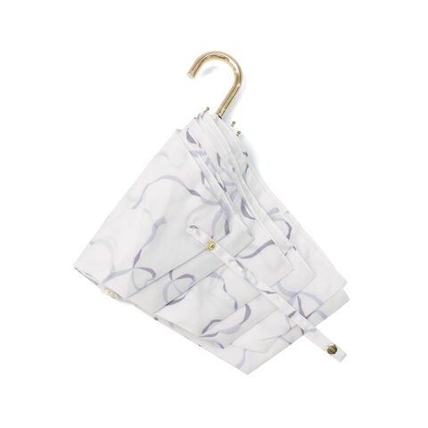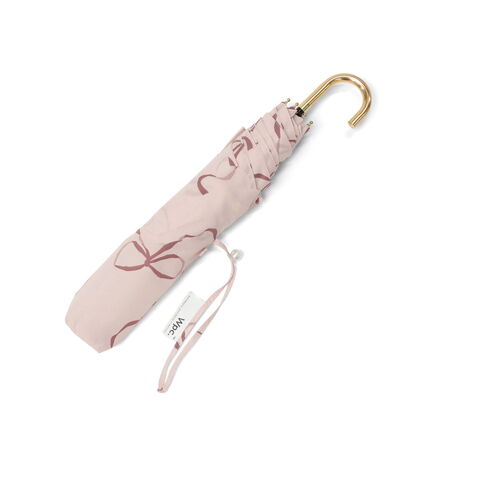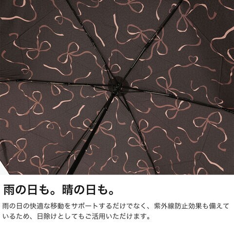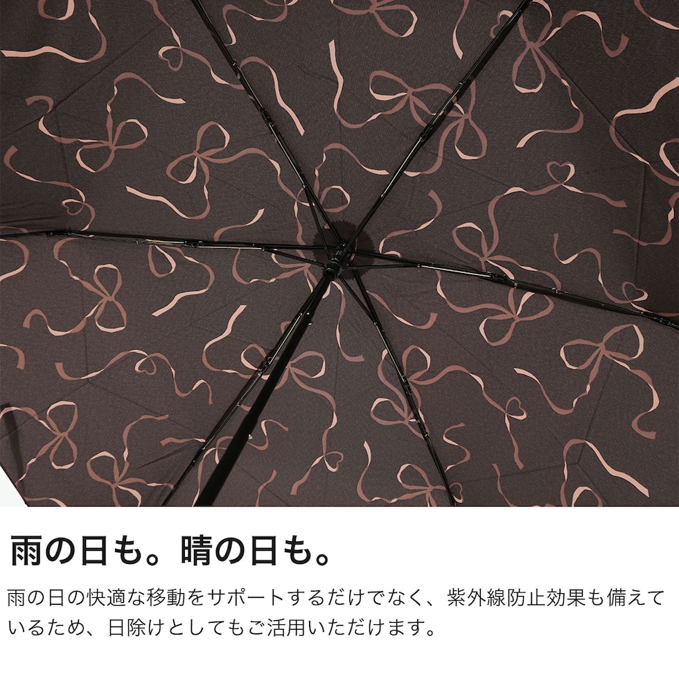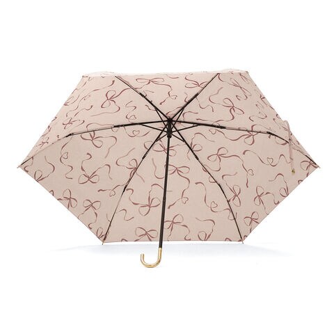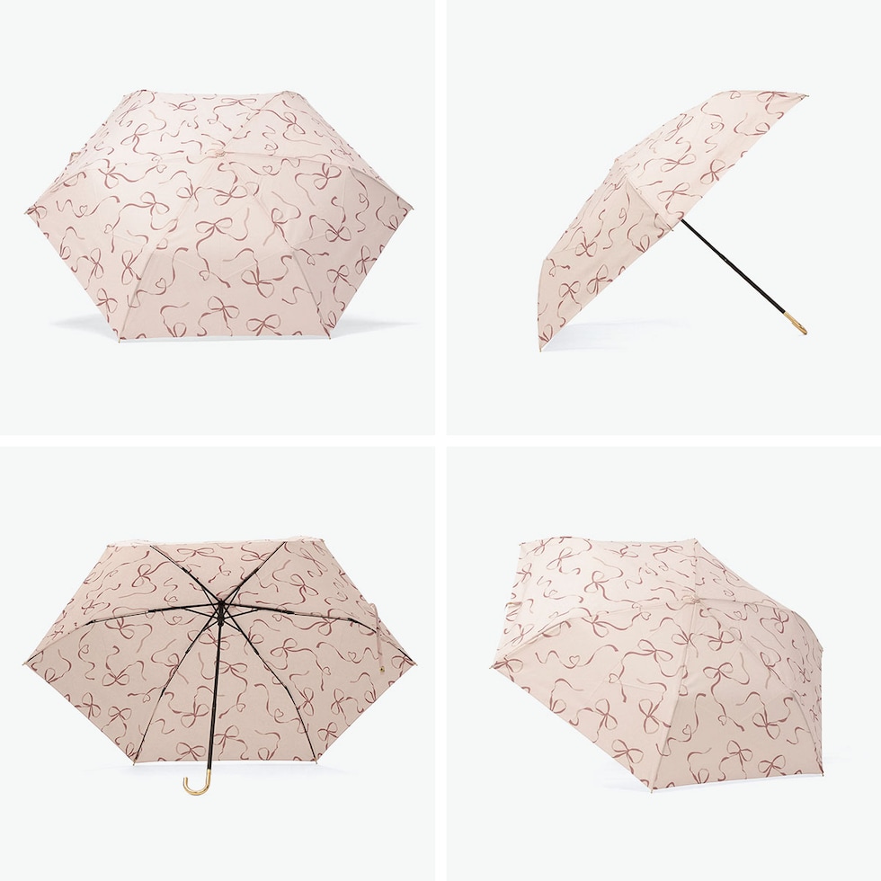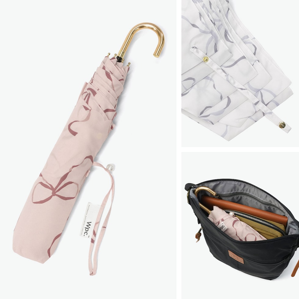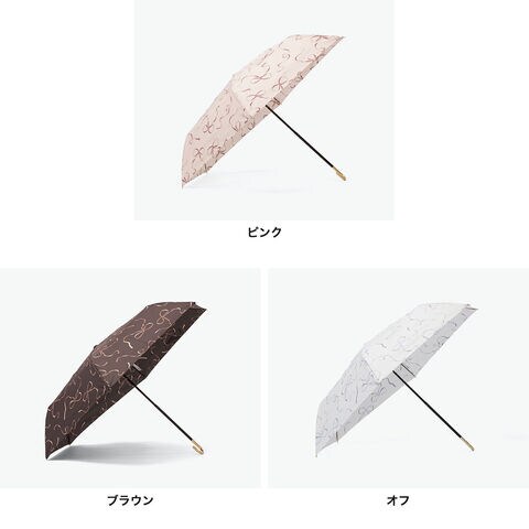 心ときめく折りたたみ傘 上品なリボン柄の中にハートモチーフを忍ばせた、大人フェミニンなデザインの折りたたみ傘。ゴールドの持ち手とパールボタンがアクセントになり、甘さをほどよく抑えた上品な仕上がりになっています。晴雨兼用でUVカット機能も備えているため、雨の日はもちろん、日差しが気になる日にも活躍するアイテムです。 |