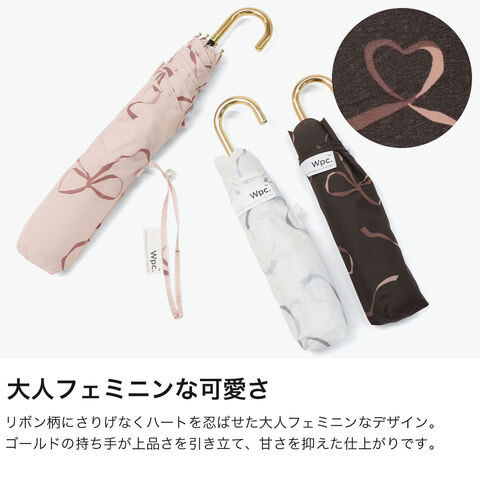 Wpc. 折りたたみ傘 レディース 軽量 晴雨兼用 ダブリュピーシー コンパクト 折りたたみ 折り畳み 手開き 手動 雨傘 日傘 おしゃれ ハート リボン かわいい 50cm ハートリボン ミニ 4780-015-002