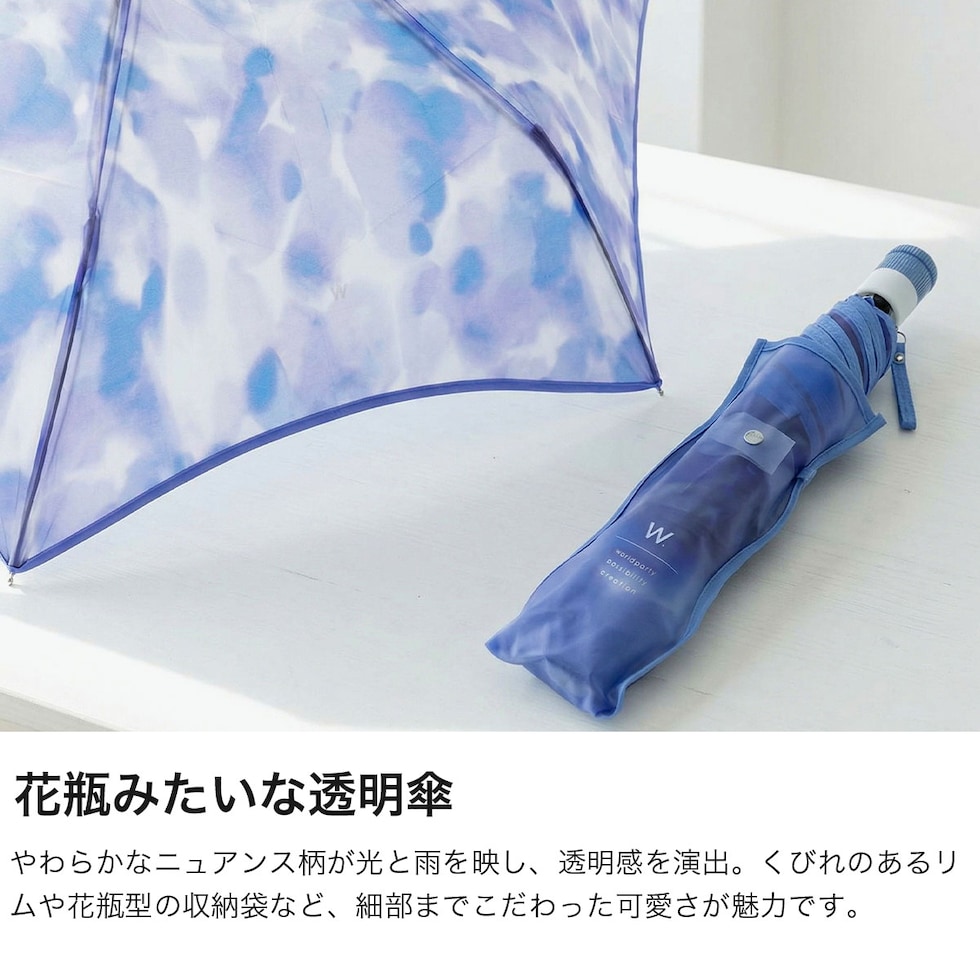 Wpc. 折りたたみ傘 レディース 軽量 丈夫 ダブリュピーシー 傘 雨傘 かわいい きれい 折りたたみ 折り畳み 折り畳み傘 ブランド ビニール傘 ニュアンス ビニール 軽い 手開き フラワーベースアンブレラ ミニ PT-0081-002