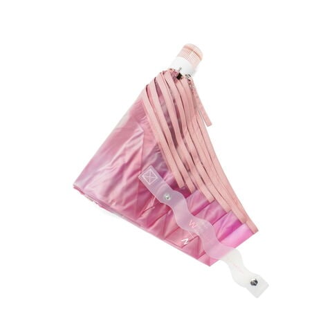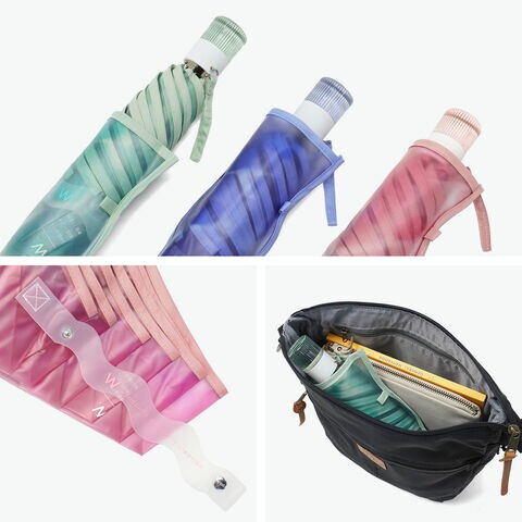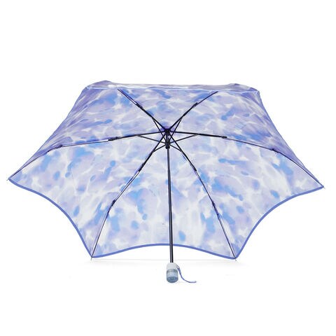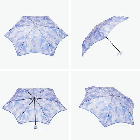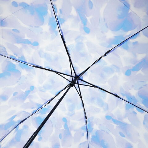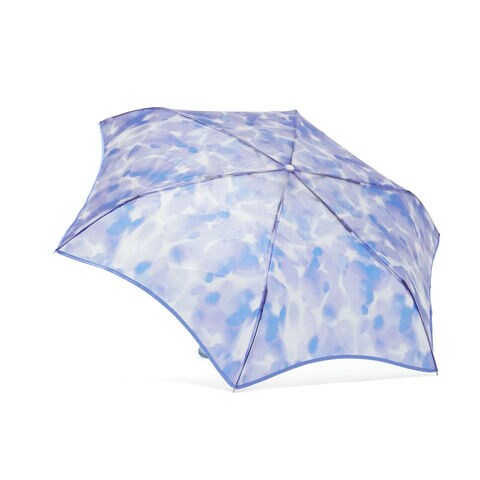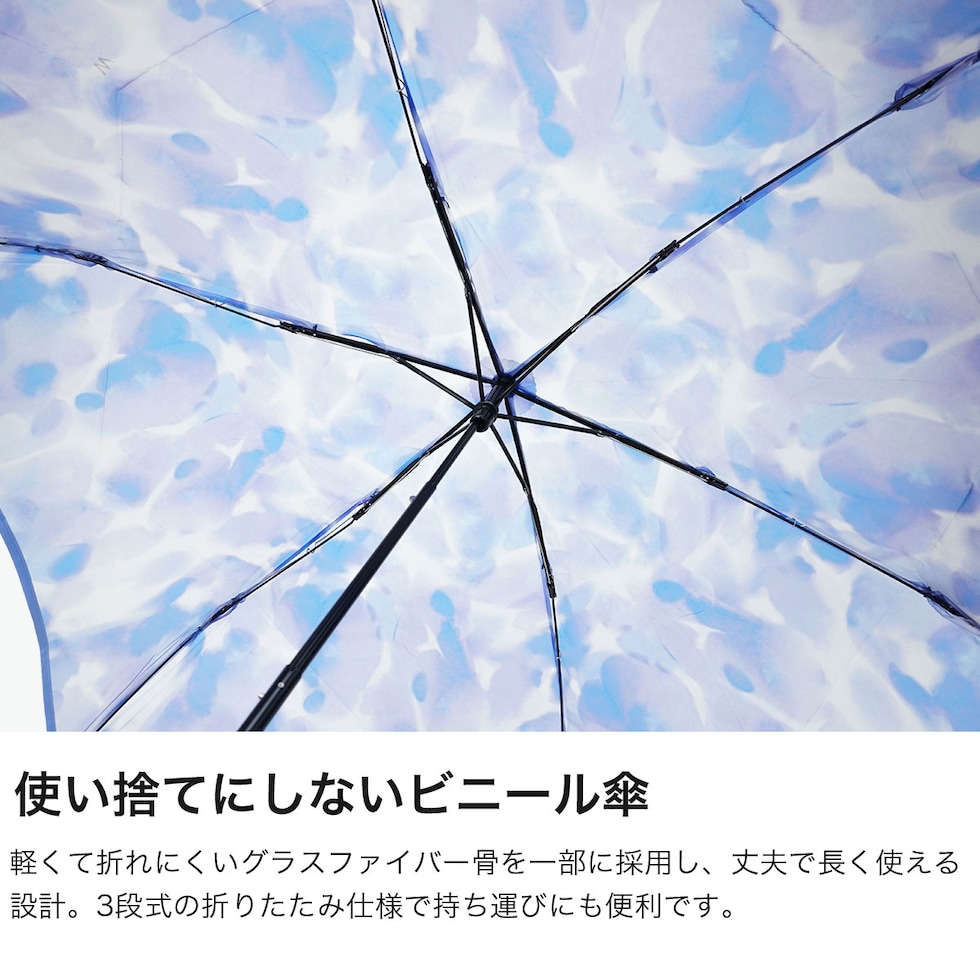 大人かわいい1本 揺らぐようなニュアンス柄の吹きガラスの花瓶をモチーフにした『Wpc.』の折りたたみ式ビニール傘。滲んだ水彩のようなモヤっとした柄と、お花を連想させるなみなみカットのリムが特徴的です。ギザギザとした持ち手は、ヴィンテージガラスをイメージしました。骨の一部には強度の高い素材を使用し耐風性にも優れていながら、軽量なつくりで持ちやすい仕上がりになっています。 |