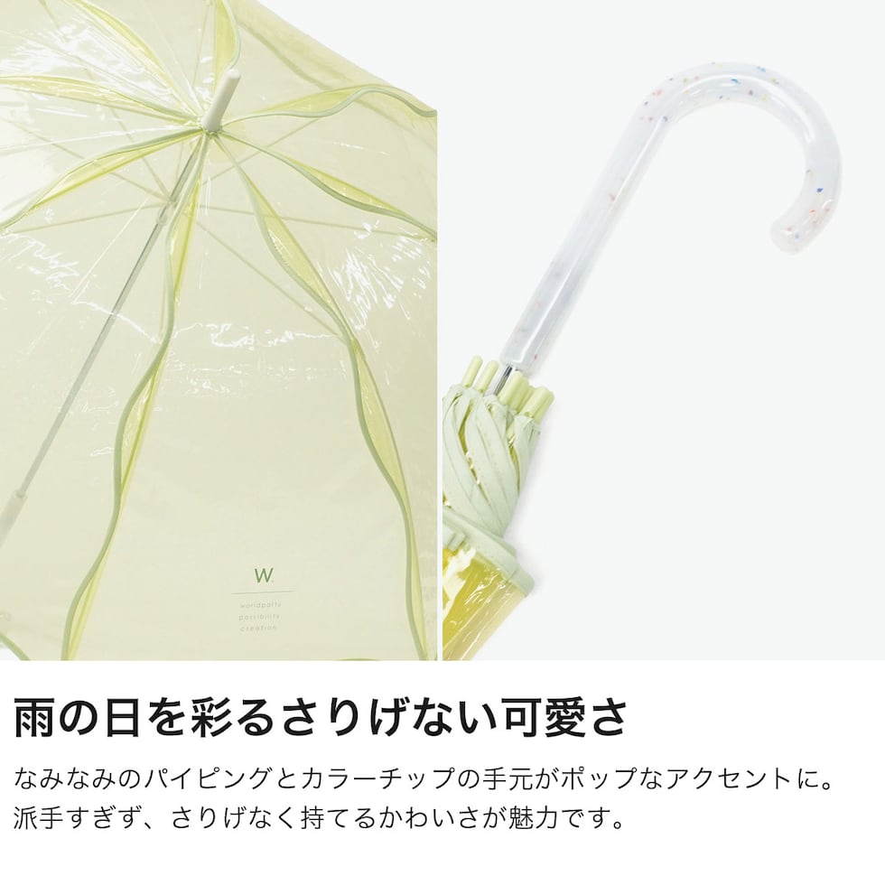 Wpc. 傘 レディース ダブリュピーシー 雨傘 おしゃれ かわいい きれい ブランド 大きめ 長傘 ビニール傘 60cm 軽量 クリア 透明 ビニール 丈夫 軽い 風に強い 手開き 通勤 通学 上品 ウェービーアンブレラ PT-071-001