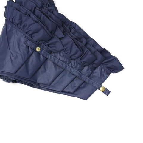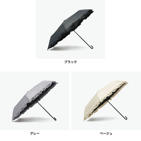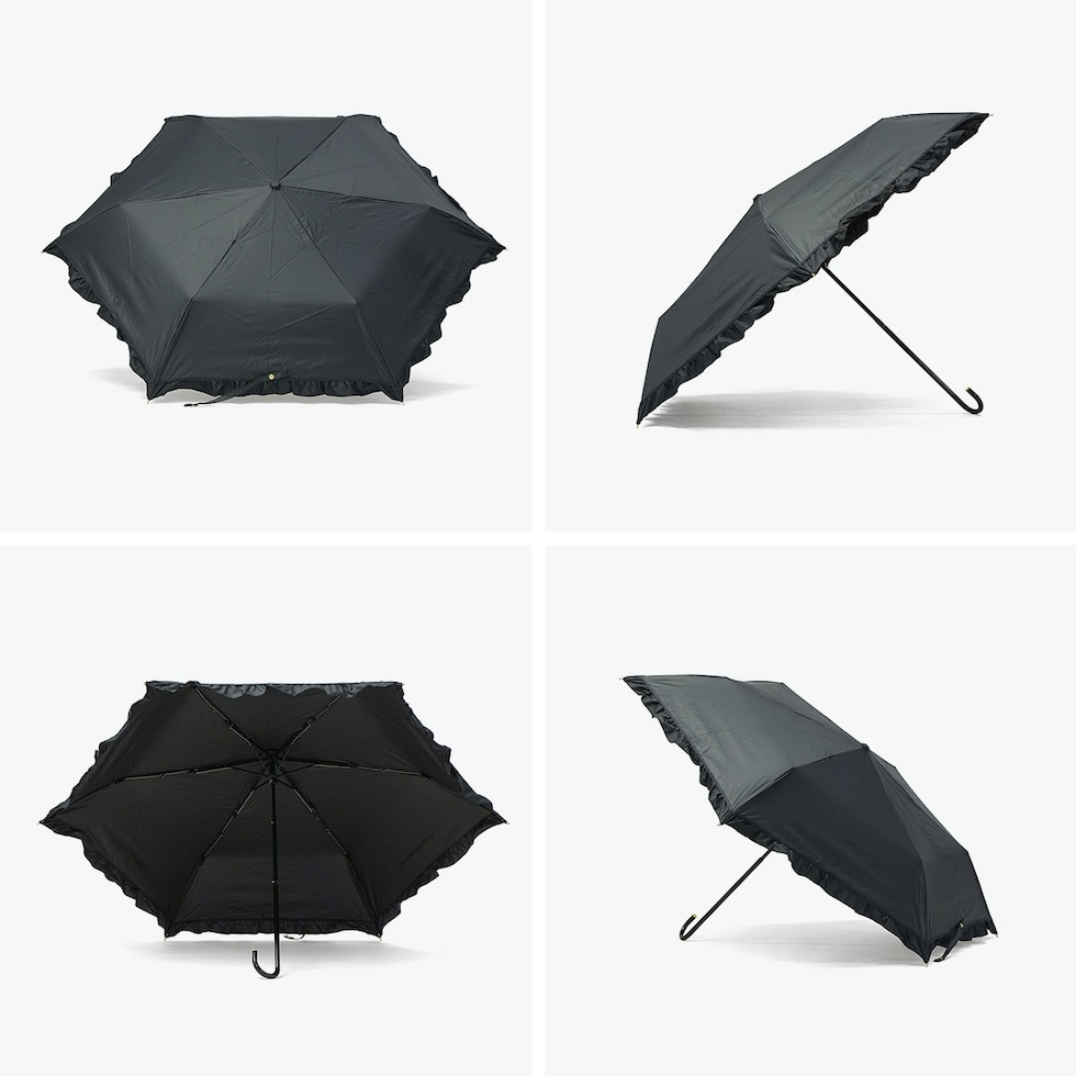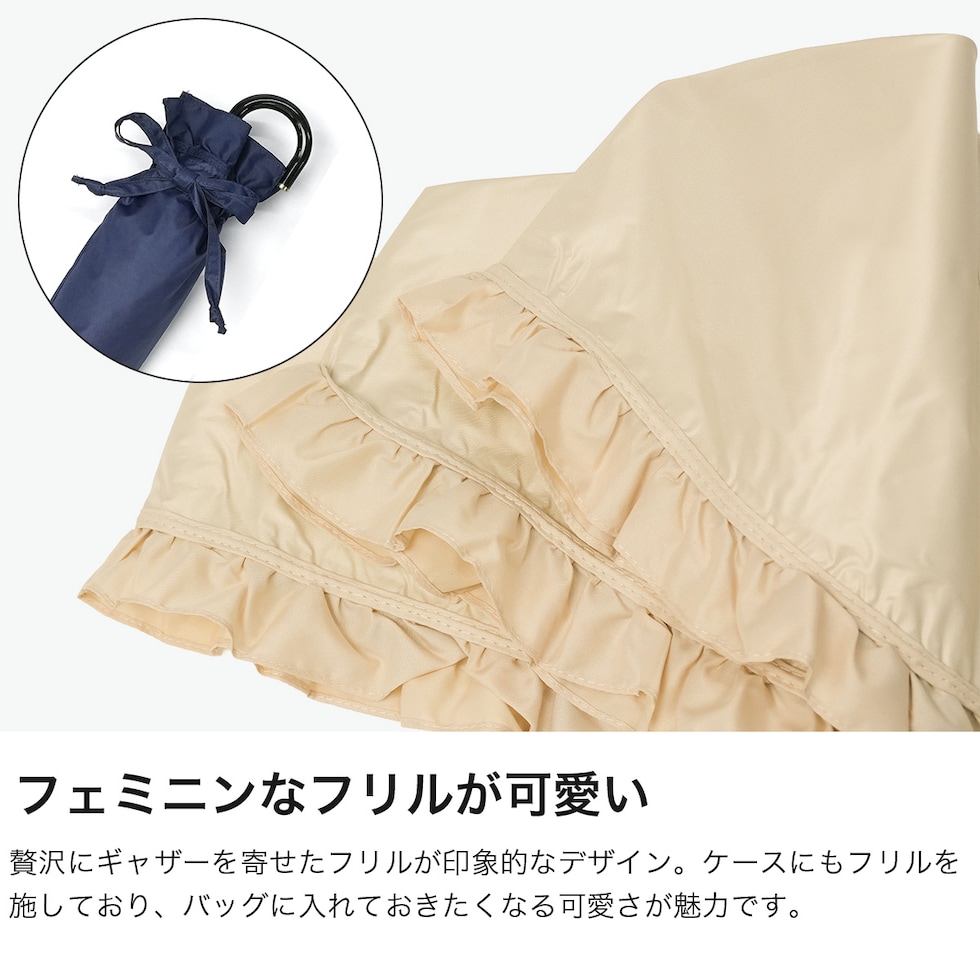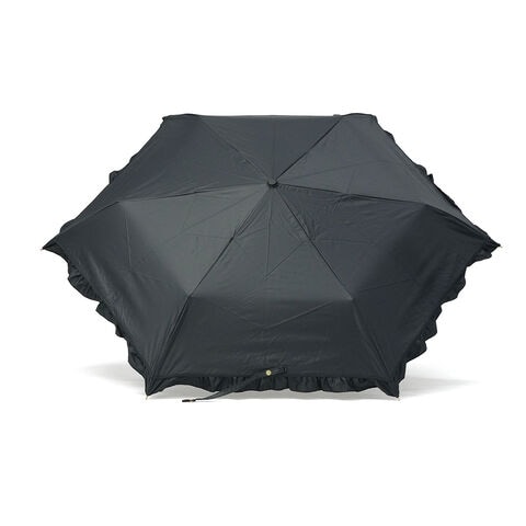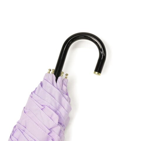 フェミニンな折り畳み傘 上品で可愛いフリルが大人気の晴雨兼用折りたたみ傘。華奢でレトロなデザインの金属製ブラック手元でより一層女性らしい印象に。フェミニンなコーディネートはもちろん、Tシャツなどのカジュアルスタイルとも相性抜群◎幅広いファッションに合わせやすく、コーディネートのワンポイントとしても活躍してくれる大人可愛いアイテムです。 |