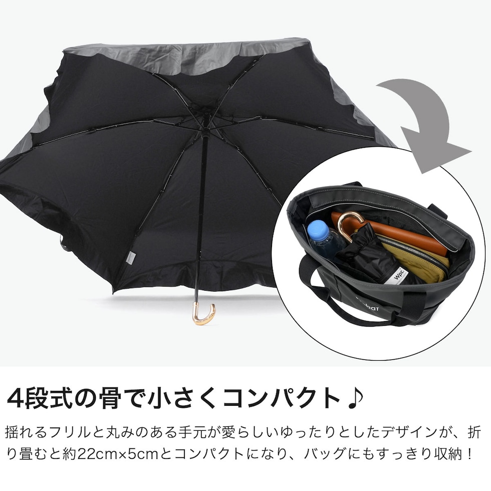 Wpc. 折りたたみ傘 レディース ダブリュピーシー 遮光 雨傘 日傘 傘 折り畳み 晴雨兼用 おしゃれ かわいい 大人 コンパクト 完全遮光100% 遮熱 撥水 UPF50+ 親骨50cm 遮光コンパクトフリル ミニ 801-11546-102