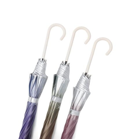 雨の日をモードに染める、シルバーを重ねたグラデーションのモダンなビニール傘です。シルバーながらも落ち着いたカラートーンで存在感を演出し、クールな装いとも相性抜群◎。ワンタッチで開くジャンプ式で使いやすく、片手での操作が可能です。骨の一部には、強度の高いグラスファイバーを使用しており、耐久性もばっちり。曇り空に映える都会的なグラデーションで、雨の日でも気分を高めてくれる一本です。