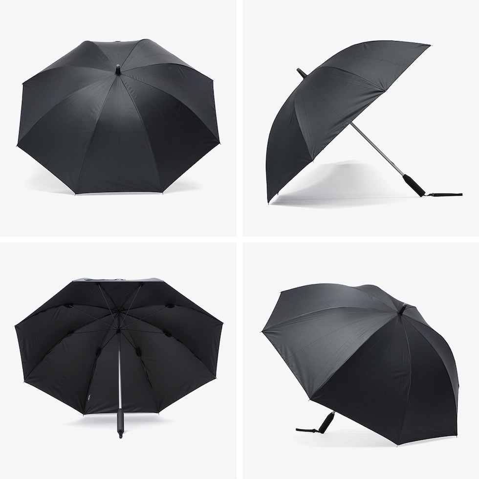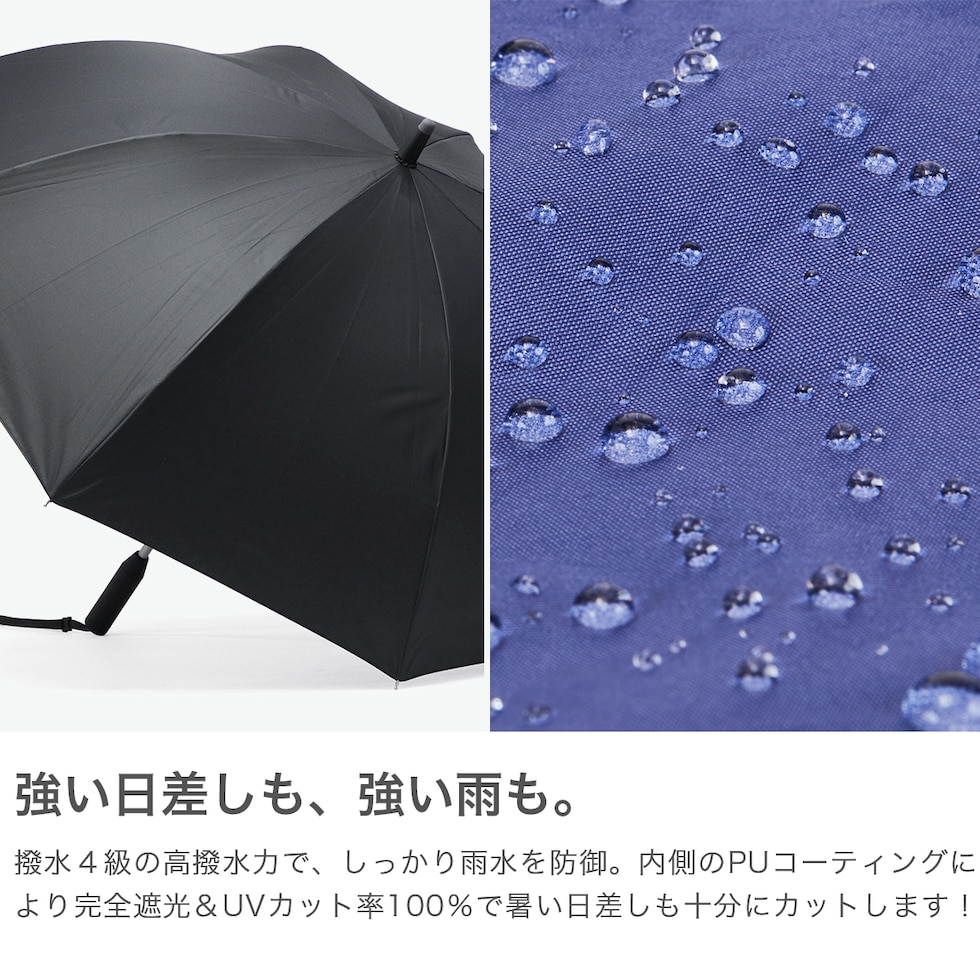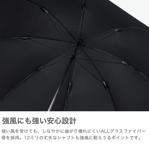 頼れる大きめ長傘 太陽・雨・風への対策が万全な全天候対応の傘。内側PUコーティングが日差しをカットし、黒地で照り返しも軽減してくれます。グラスファイバー骨を使用し、風を受けてもしなやかに曲がって壊れにくい耐風仕様。親骨60cmの大きめサイズで、突然の雨でもしっかりカバーしてくれます。無駄を省いたシンプルデザインに、長めストラップで実用性も抜群です。 |