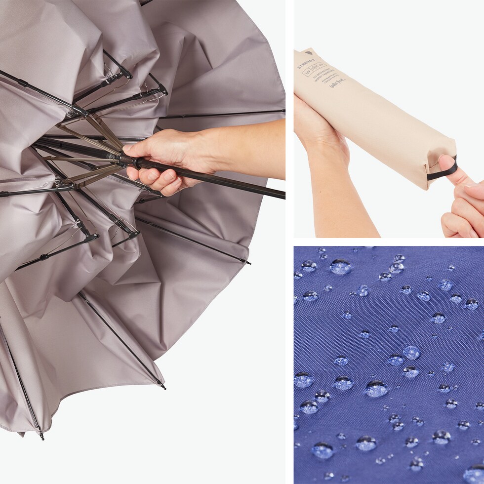 頼れる耐風折りたたみ傘 傘に求められるシーンや機能を徹底的に追及した「LESS IS MORE」シリーズ。こちらの傘は、高い柔軟性をもちポリカーボネートを使用した耐風傘です。通常の折り畳み傘より多い8本骨構造で、高い耐風性と耐久性を実現。性別問わず選びやすいカラーバリエーションと、どんなシーンでも使いやすいシンプルデザインが魅力です。 |