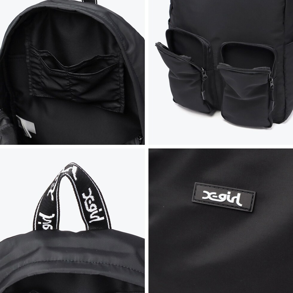 | ロゴテープがポイントの 多機能シンプルリュック シンプルデザインで持ち歩きに便利なバックパック。持ち手部分のX-girlロゴのジャガードテープと、フロントのラバーネームがポイントです。メインルームにはPC収納を備え、内外に豊富なポケット付きで収納力も抜群。シティユースから通勤通学、旅行やイベントまで幅広く活躍してくれます。 |