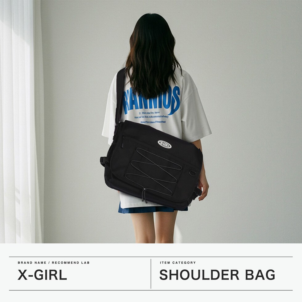 エックスガール ショルダーバッグ レディース 斜めがけバッグ 大きめ A4 X-girl メッセンジャーバッグ 斜めがけ 軽量 横型 おしゃれ かわいい カジュアル 14L OVAL LOGO BUNGEE CORD MESSENGER BAG 105251053007