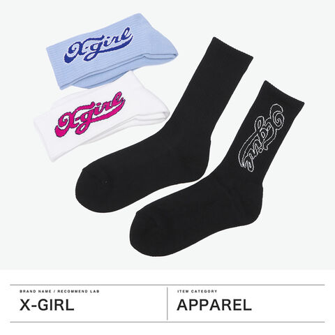 毎日のスタイリングに重宝する定番のミドル丈ソックス。カラーリングが目を惹くX-girlロゴをジャガードしたデザインと、ベーシックな素材感でシーズンレスで活躍します。足裏パイル入りで、クッション性も抜群。毎日のスタイリングのアクセント使いにもぴったりで、学生から大人まで幅広く愛用できます。