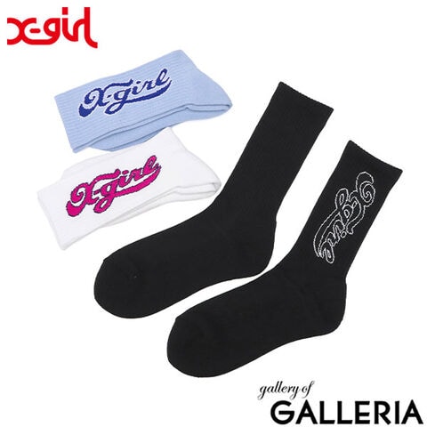 【メール便】エックスガール 靴下 レディース X-girl ソックス おしゃれ かわいい ブランド ロゴ ストリート ミドル丈 リブ靴下 足裏パイル 女子 高校生 スクール 日本製 CHEERFUL LOGO RIB SOCKS 105251054006