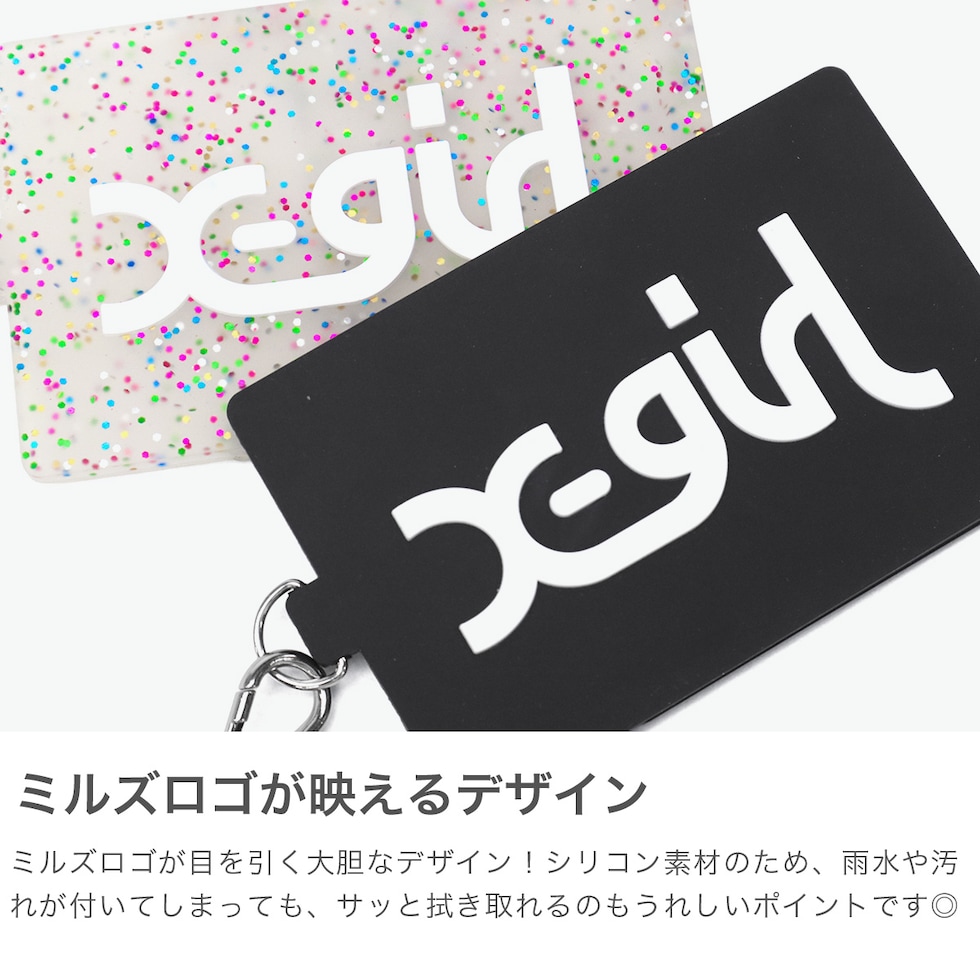 【メール便】 エックスガール パスケース ブランド 落ちない 定期入れ ICカード X-girl 可愛い レディース 通学 女子 コード付き 伸びる シリコン カラビナ MILLS LOGO RUBBER PASS CASE 105225054007