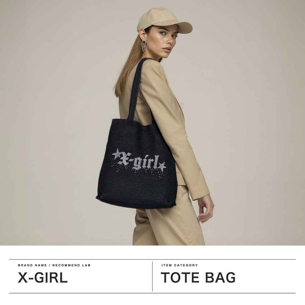 Y2Kデニムトート 星がきらめくようなX-girlロゴのグラフィックが魅力のトートバッグ。加工感のあるデニム素材と、ラグジュアリーなキラキラのラインストーンデザインをMIXしたトレンドライクな仕上がり。デイリーユースから旅行やレジャーなど、幅広いシーンに活躍するアイテムとなっています。 |
