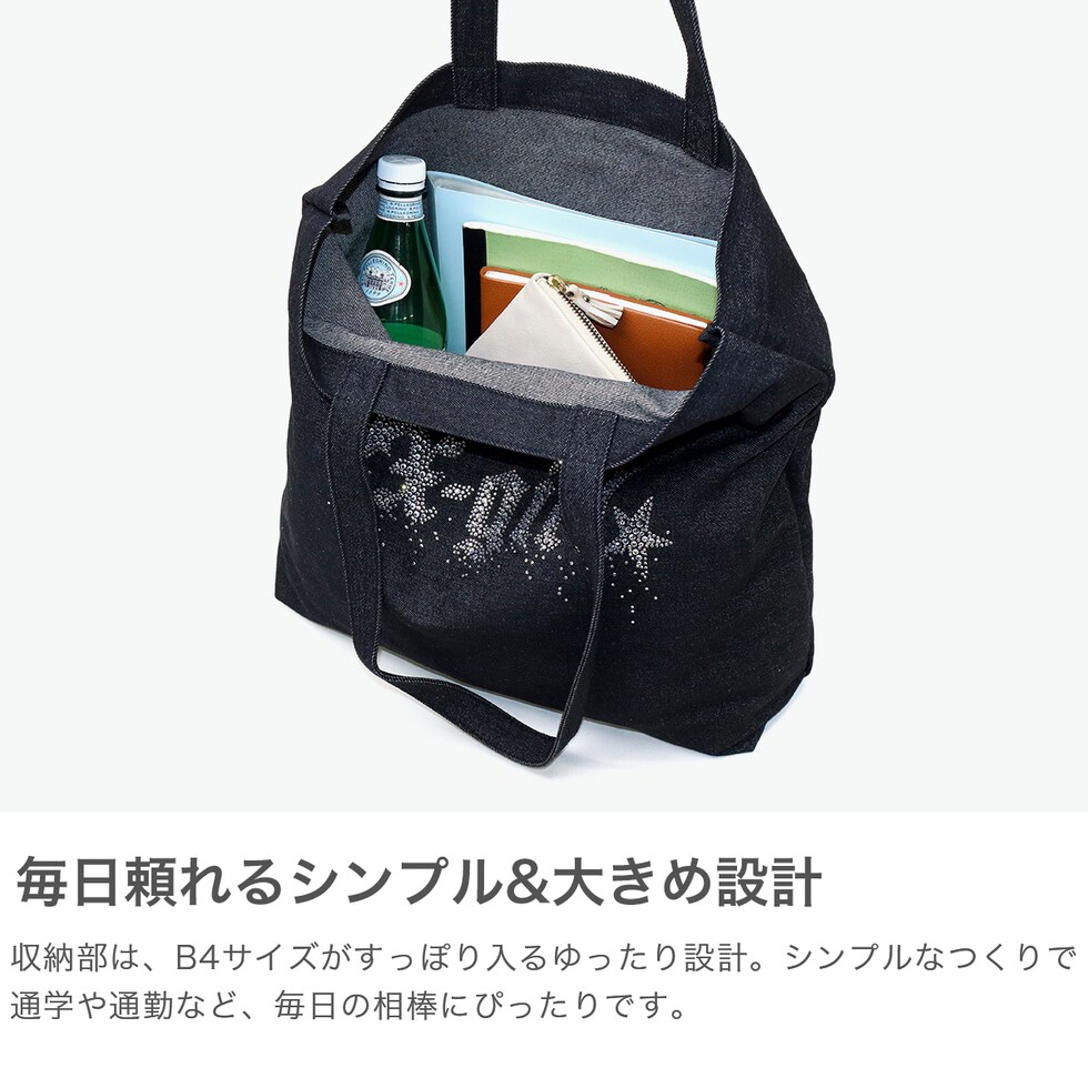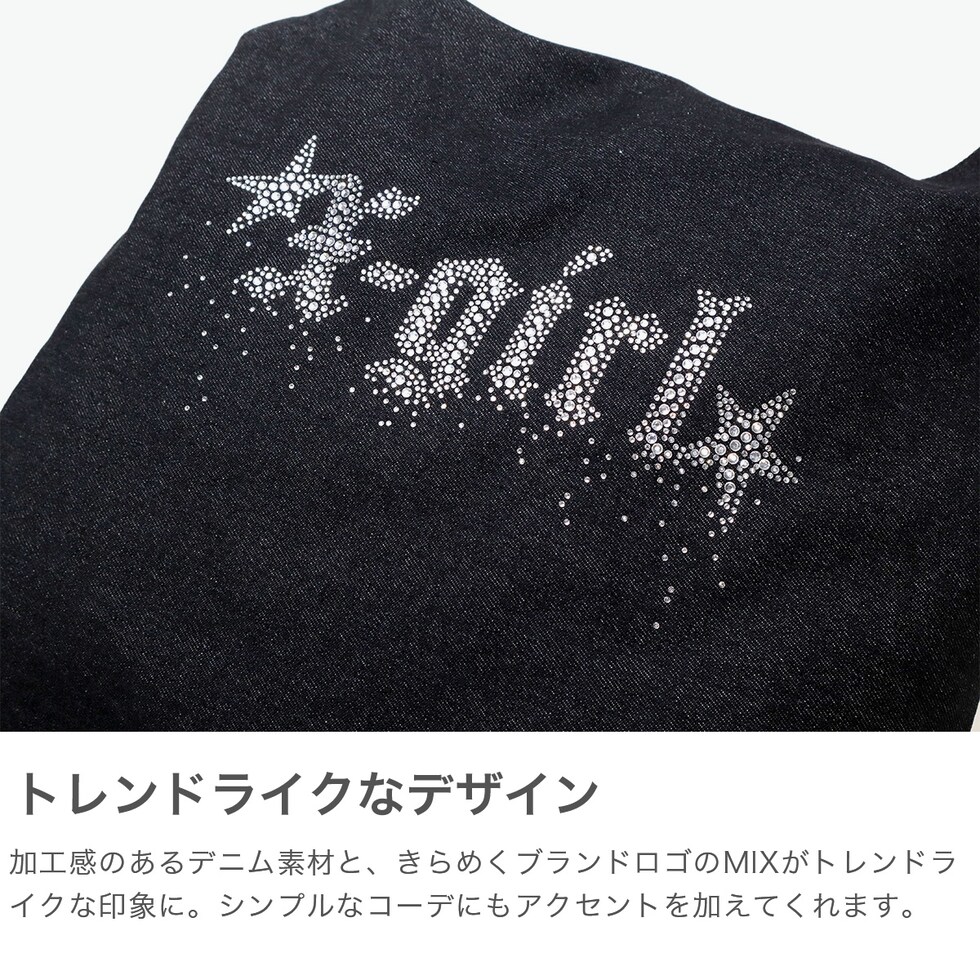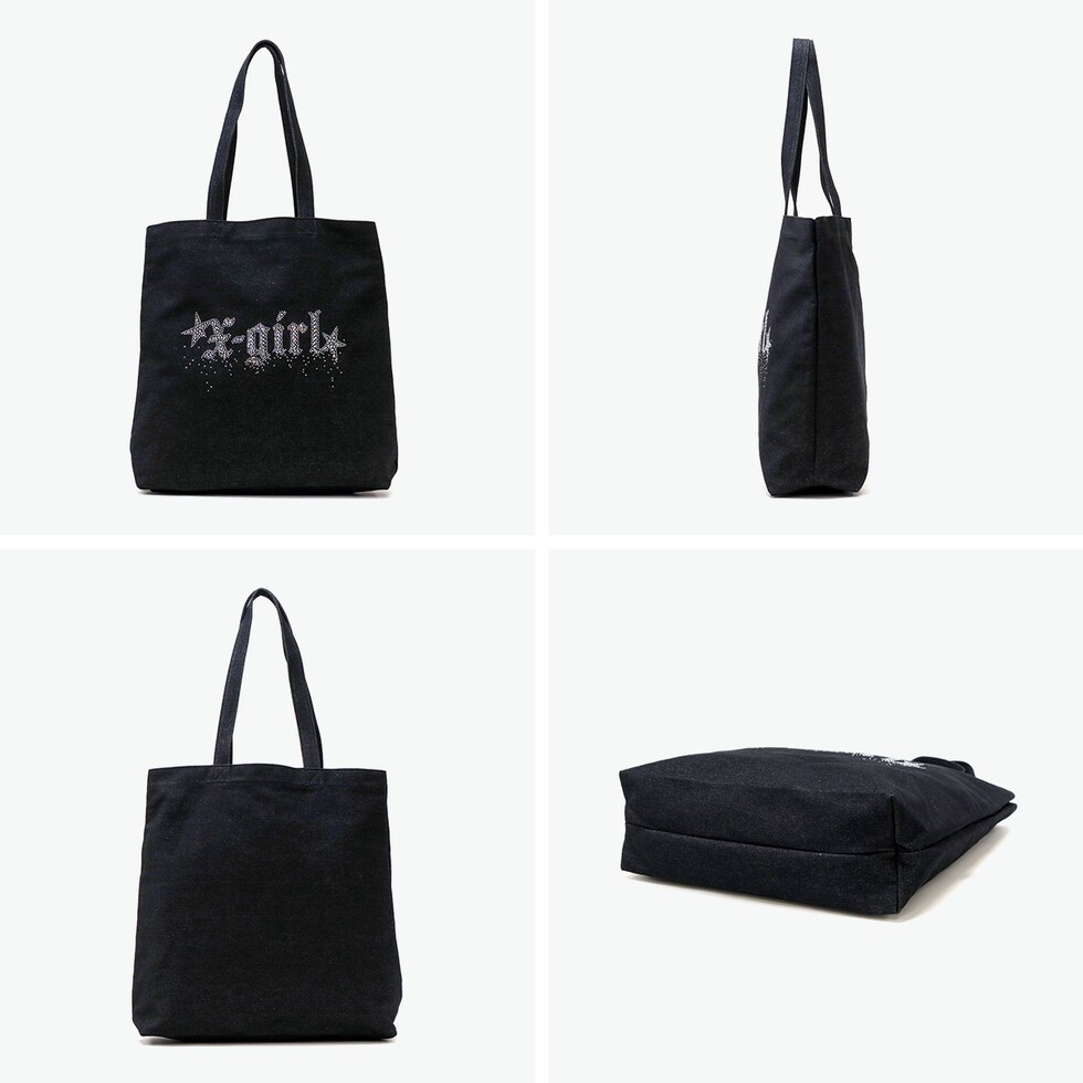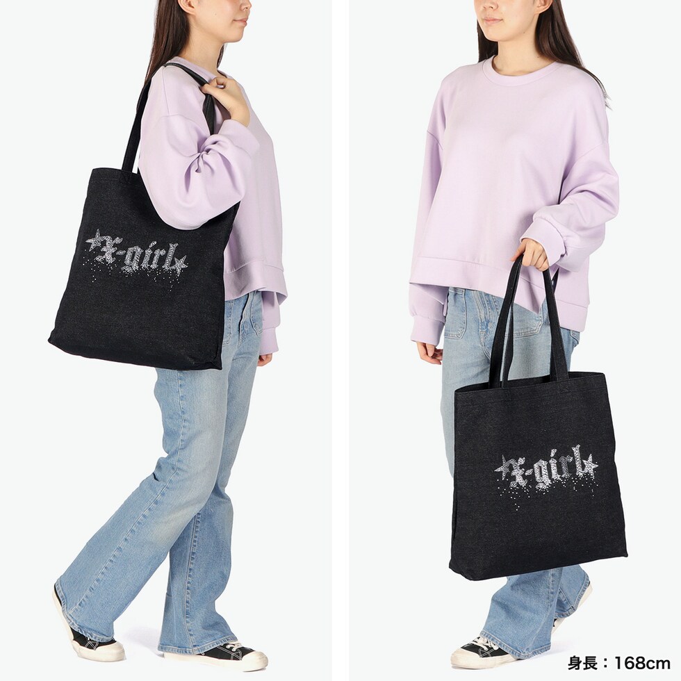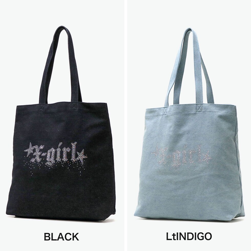 エックスガール トートバッグ レディース A4 B4 大きめ X-girl バッグ 軽量 軽い 布 ブランド 縦 縦型 通学 デニム デニム生地 ラインストーン トート おしゃれ RHINESTONE STARDUST LOGO TOTE BAG 105252053001