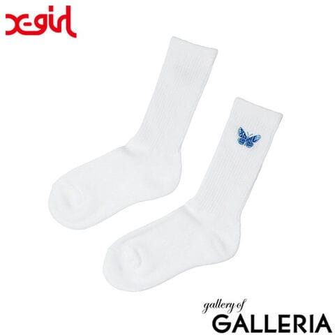 【メール便】 エックスガール 靴下 レディース X-girl ソックス おしゃれ かわいい ブランド ストリート ミドル丈 リブソックス 女子 高校生 スクール 黒 EMBROIDERED BUTTERFLY RIB SOCKS 105252054003