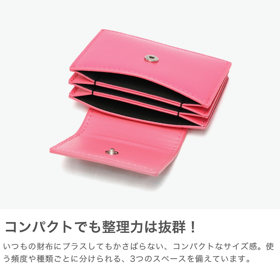 | キラッと光る存在感 毎日にかわいいをプラス キラキラなラインストーンを埋め込んだロゴが目を惹く、トレンドライクなカードケース。カードポケットが連なったじゃばら仕様で、見渡しやすく取り出しやすいのがポイント。大人っぽいフェイクレザ―素材と、Y2KらしいロゴデザインのMIX感が魅力です。 |