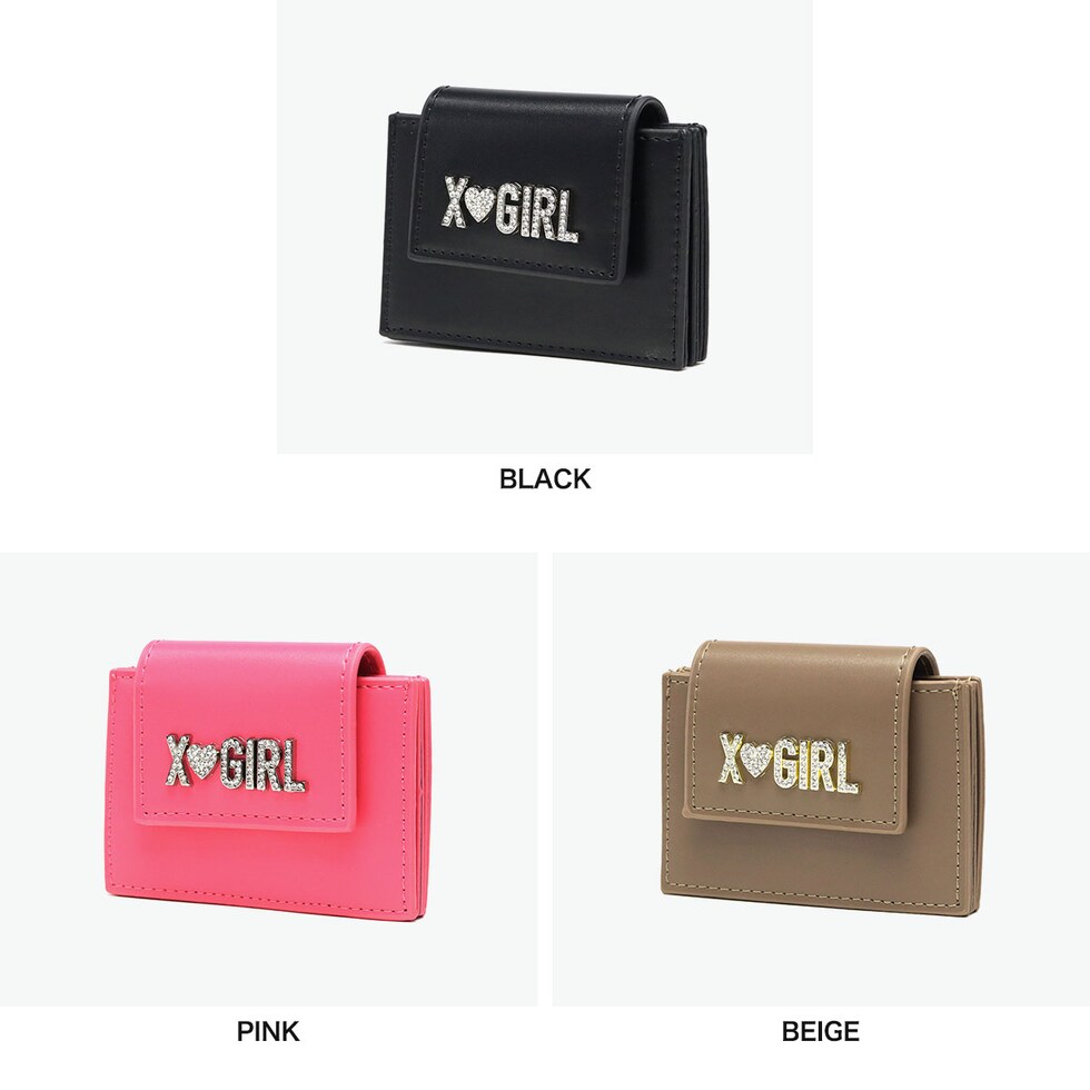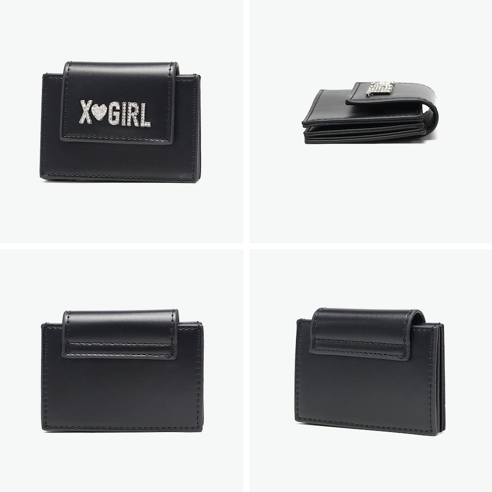 エックスガール カードケース 薄型 じゃばら レディース スリム X-girl パスケース ブランド おしゃれ かわいい カード入れ ミニ財布 ミニ コンパクト ケース 軽量 ICカード 通学 Y2K RHINESTONE LABEL CARD CASE 105252054012