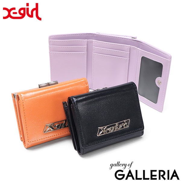 エックスガール 三つ折り財布 財布 レディース 女子高生 がま口 X-girl コンパクト 三つ折り ブランド 黒 LOGO PLATE MINI WALLET 105252054008