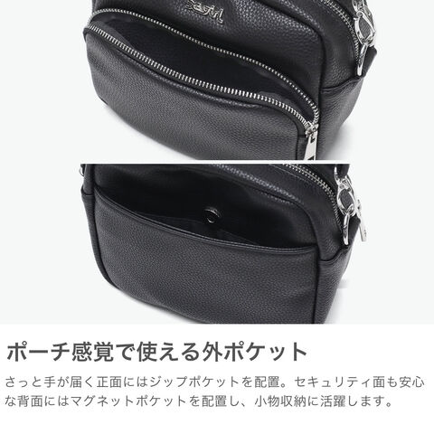 トレンドライクなミニショルダーバッグです。合成皮革にブランドのメタルロゴが映える、高級感のあるデザイン。ストリートファッションやスポーティーMIXと相性抜群です。コンパクトなサイズ感でありながら、スマホや長財布など、必要最低限のアイテムがしっかり収納できます。