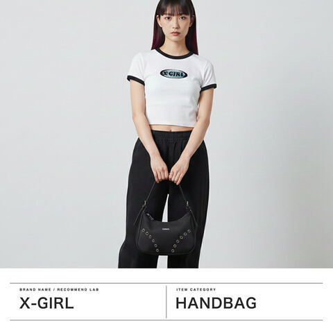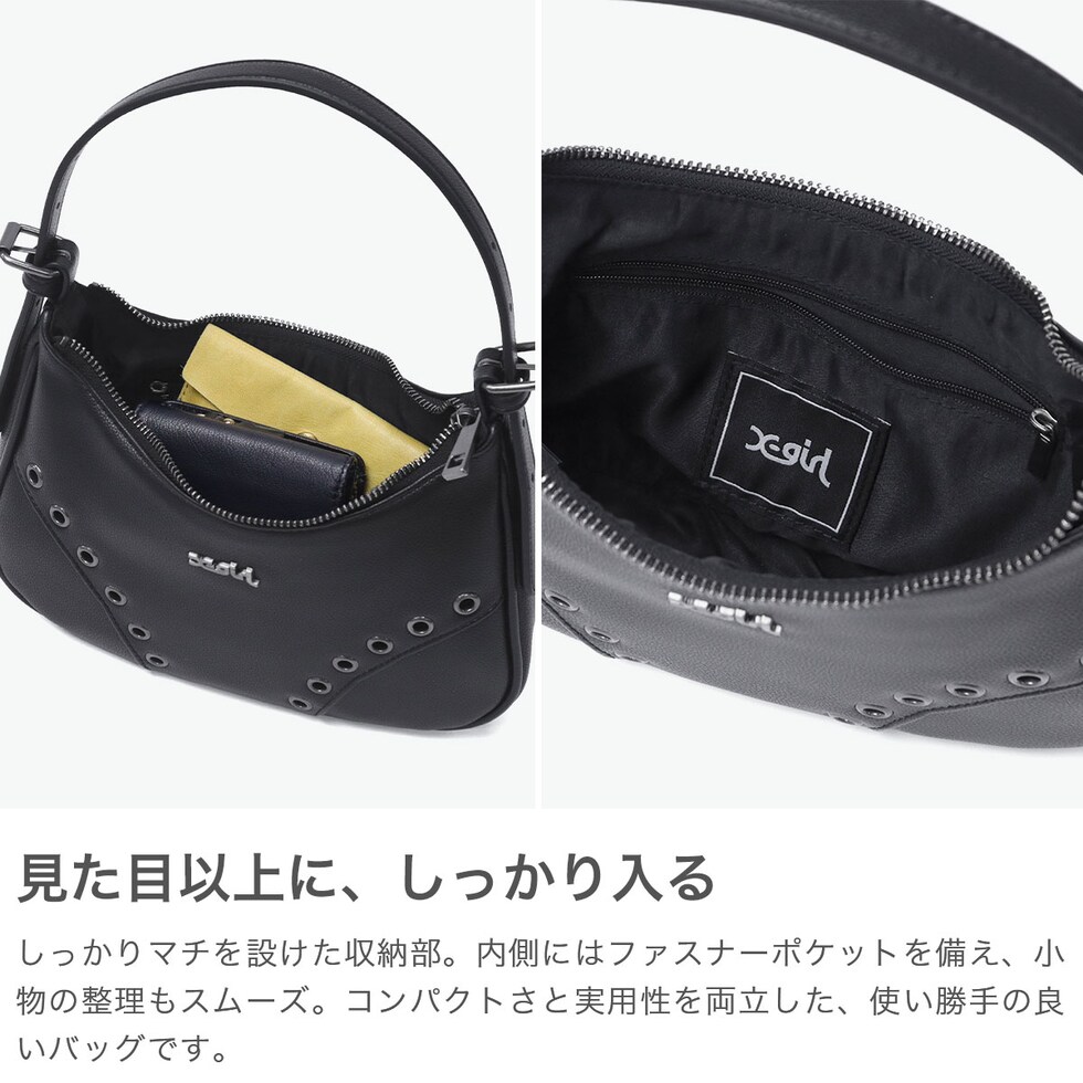 エックスガール ハンドバッグ レディース 小さめ 横長 X-girl バッグ 軽量 フェイクレザー 合皮 ハトメ ミニサイズ ブランド かわいい おしゃれ コンパクト EYELET FAUX LEATHER HAND BAG 105253053010