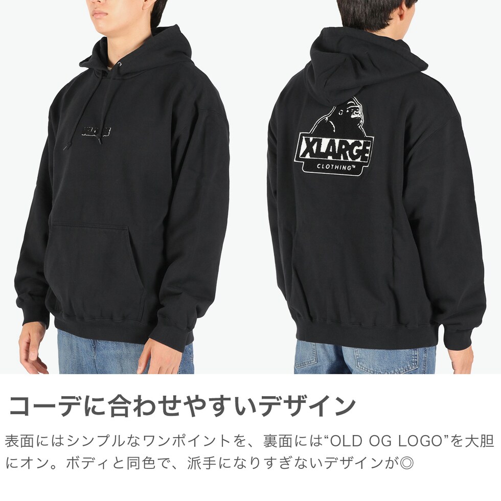 | 立体感あるロゴが映える 『XLARGE』パーカー バックに大きく配置した"OLD OG LOGO"がポイントの『XLARGE』のパーカー。フロントとバックのロゴは、サガラ刺繍で施した立体感あるデザインとなっており、ボディと同色ロゴなので派手になりすぎない1枚となっています。 |