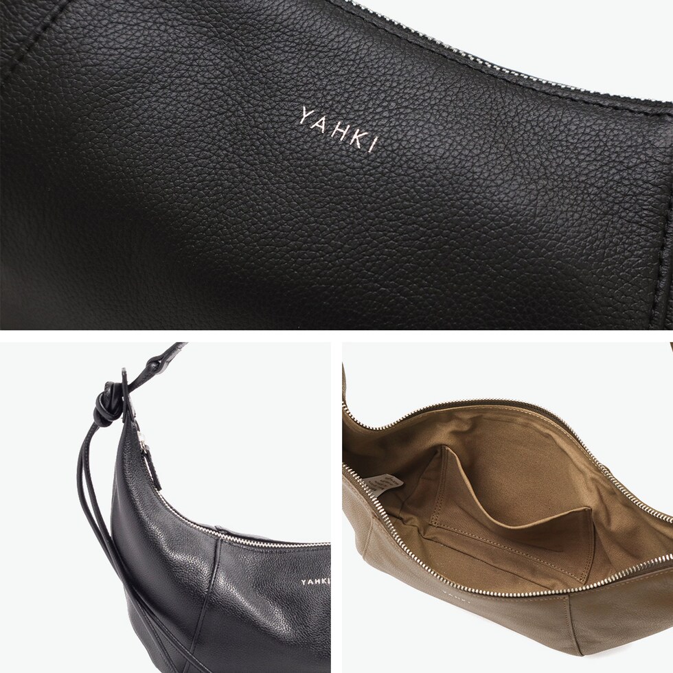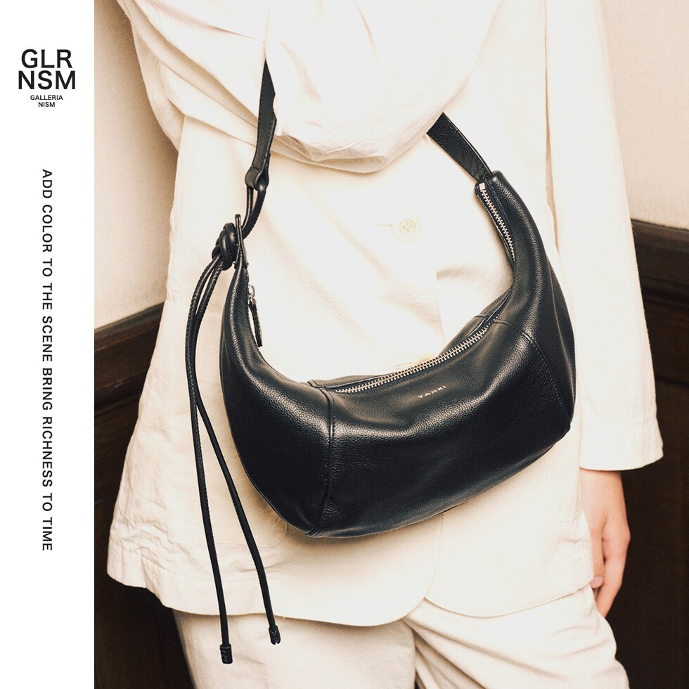 | フォルムと質感で纏う トレンド感と遊び心 クロワッサン型のやわらかなフォルムと、リアルレザーのくったりとした質感が魅力のショルダーバッグ。ストラップは結び位置で長さ調整でき、肩掛けはもちろん斜め掛けにも対応。立体的なシルエットは、見た目以上の収納力を備え、機能性とトレンド感を兼ね備えたアイテムです。 |