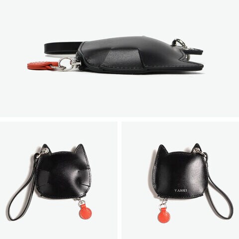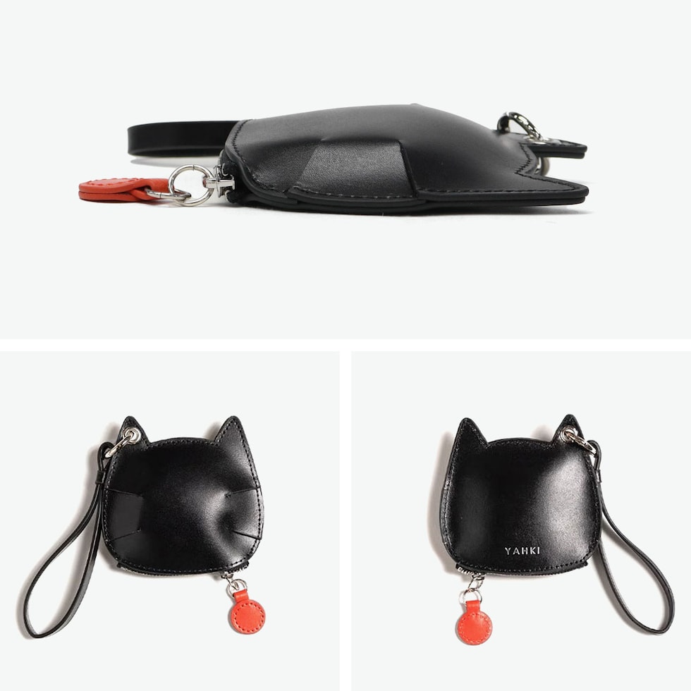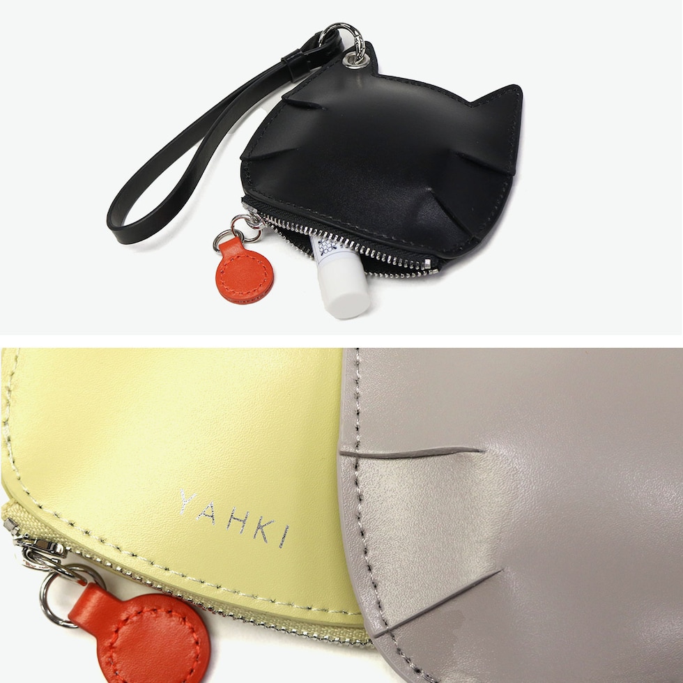 ヤーキ ポーチ レディース マルチケース 小さめ YAHKI ブランド おしゃれ 女性 ミニポーチ ストラップ付 革 ネコ型 ネコ 猫 かわいい レザー 床革 コインケース 小銭入れ 小物 可愛い SMOOTH MULTI CASE YH-678C