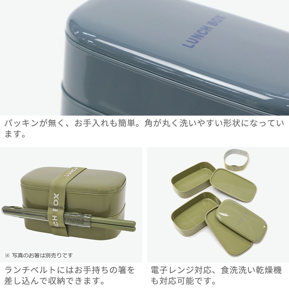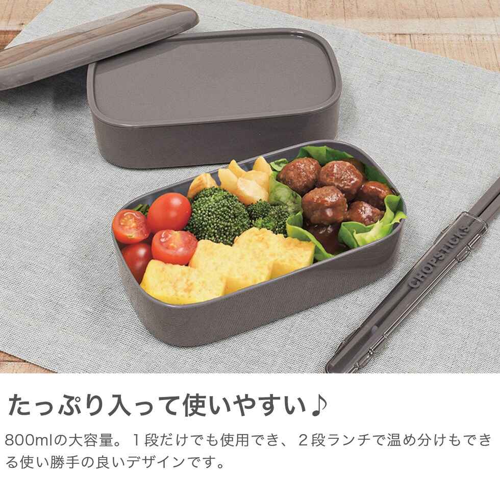 シンプルなお弁当箱 シンプルで少し柔らかい印象の「monochrome/モノクローム」シリーズの2段タイプのランチボックス。幅広い方にお使いいただけるスタンダードなカラーリングと800mlの大容量&軽量なデザインが魅力。1段だけでも使用できるほか、2段での使用時の温め分けもできるので便利です。 |