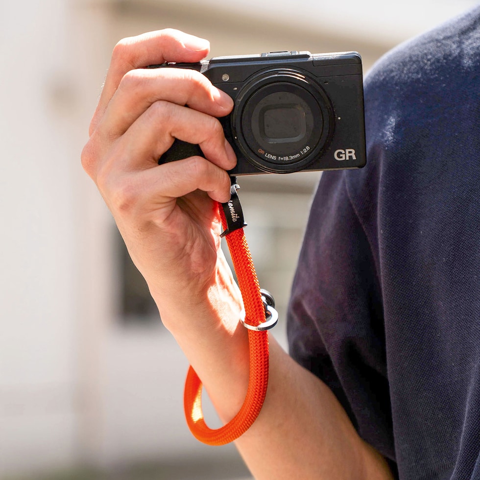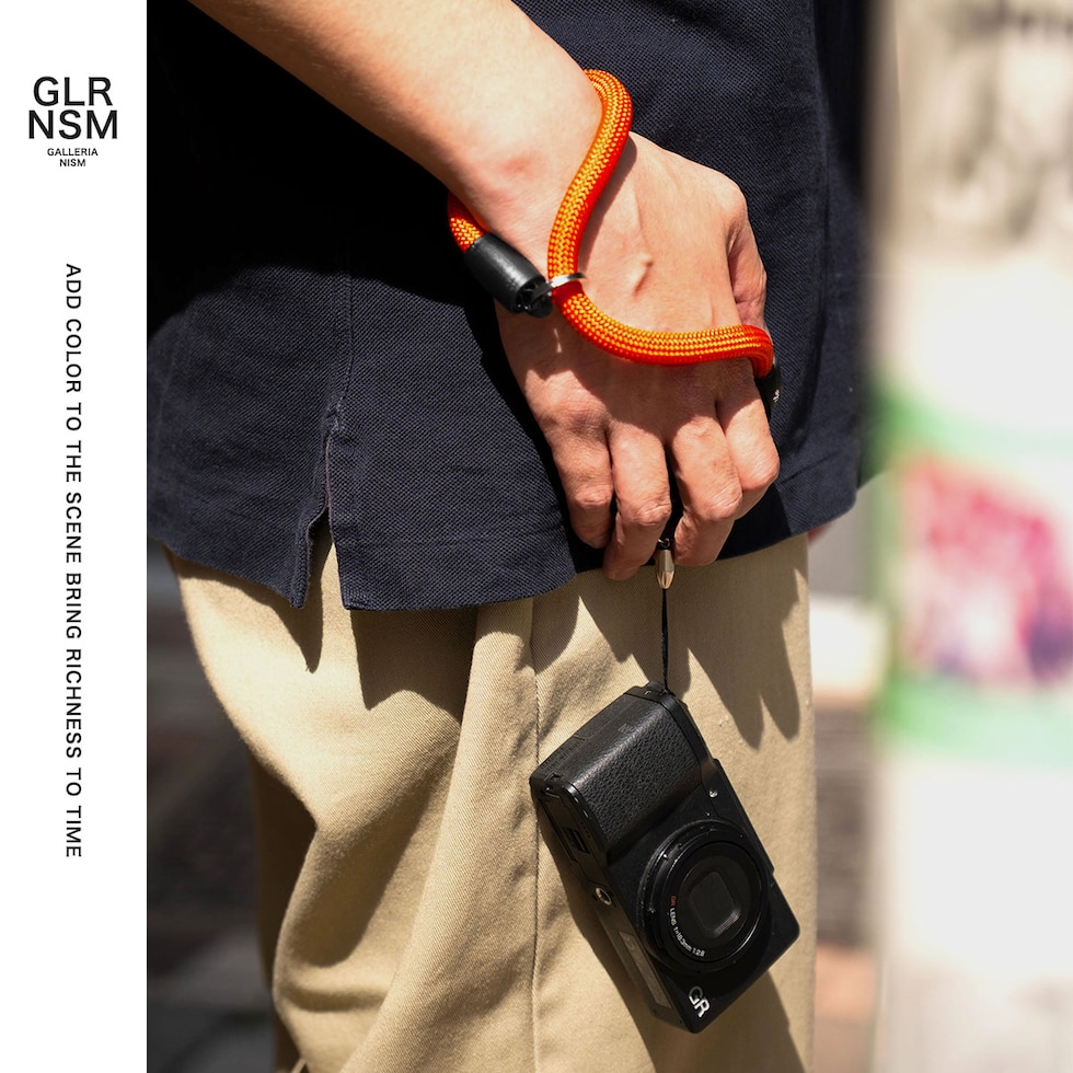 カメラストラップ 本格クライミングロープを使用した、コンパクトカメラにぴったりのストラップハンドル仕様のヨセミテカメラストラップ。特注リングによりストラップを自在に調整でき、手首にフィットすることで撮影時の安定感を提供。最上級レザーを日本の熟練された職人が丁寧に一本一本縫製しています。レザー製フックパーツも装備し、カラビナ等で露出計やフィルムなどの小物を装着するのに便利。更にモバイルストラップにも採用した、EPMアリゲーターロックシステムによりロープのほつれや抜ける心配はなくお使いいただけます。 |