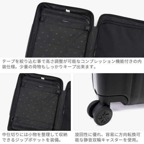 | <購入前にご確認ください> ・メーカーの意向により、付属品の収納袋や箱、製品の仕様やデザインは予告なく変更となる場合がございます。 ・下記による返品・交換はお受けすることができませんので、予めご了承ください。 └ 製品の性質上による細かいキズや塗装ムラ、気泡などがある場合。 └ 配送用の段ボールにキズ、汚れ、破損がある場合。 ・エキスパンダブル機能付きの製品は、マチ拡張時の3辺の和が機内持ち込みサイズ、預け入れ無料サイズを超える場合がございます。また、航空会社や飛行機の機種などによって規定が異なりますので、予めご確認の上お求めください。 ※機内持ち込みサイズ目安表はこちら ・荷物をお預けの際は、キャスターストッパーをOFFにしてください。 ・水濡れ(雨・汗など)や日焼けにより、色落ち、退色する恐れがございます。商品のお取り扱いには十分にご注意ください。 ・柄の位置やカラーバランスなどは、生地の裁断や製造過程、素材の特性により画像とは異なる場合がございます。商品をお選びすることはできませんので、予めご了承ください。 ・極力実物に近い色味を再現しておりますが、モニター等の条件により画面上と実物では色味が異なって見える場合がございます。 |