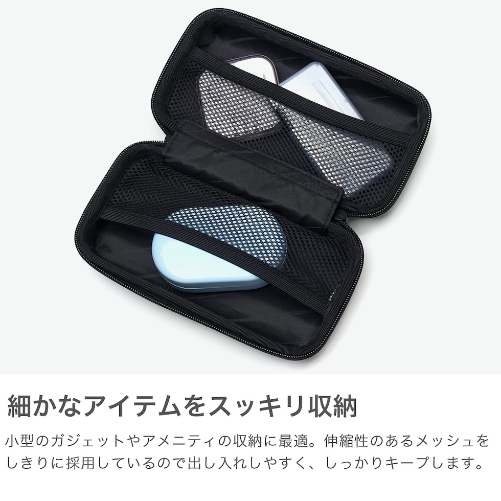 | タフに使える 万能ハードポーチ 耐衝撃性に優れたポリカーボネート製の小型ハードポーチ。ゼロハリバートンの象徴であるダブルリブデザインが、洗練された印象を与えます。コンパクトながら、小型ガジェットやアメニティをスマートに収納できるメッシュ仕切りを搭載。軽量で持ち運びやすく、ビジネスやトラベルシーンで活躍する一品です。 |