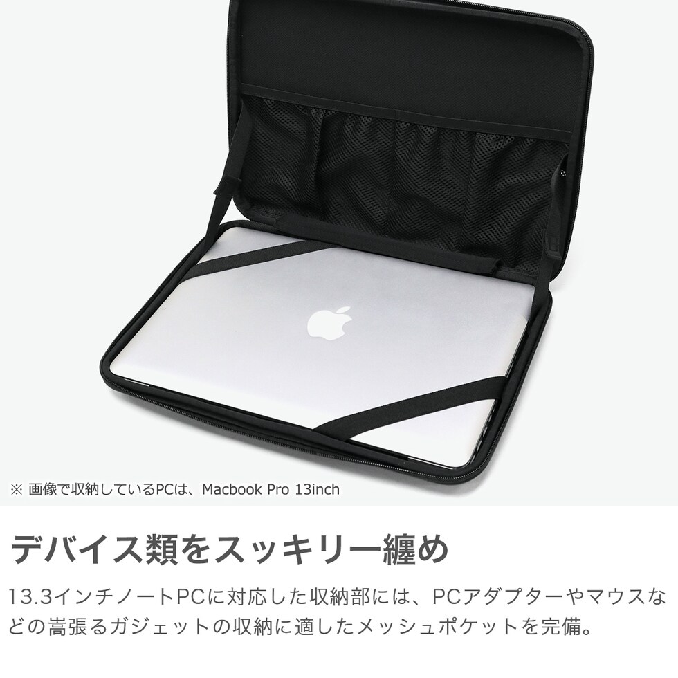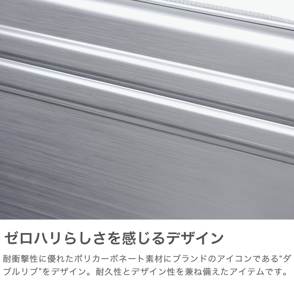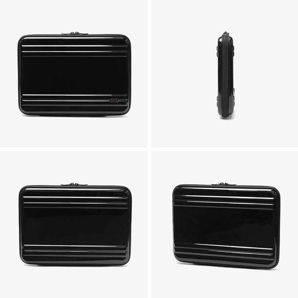| 光沢ある外観が魅力 堅牢なPC保護ケース ゼロハリバートンのスーツケースデザインを踏襲した、13.3インチ対応のPCケース。耐衝撃性に優れたポリカーボネート製で、PCをしっかりと守ります。洗練されたダブルリブデザインと光沢のある鏡面仕上げが、スタイリッシュな印象を与えます。A4サイズも収納可能で、ガジェット収納にも対応した実用性抜群のアイテムです。 |