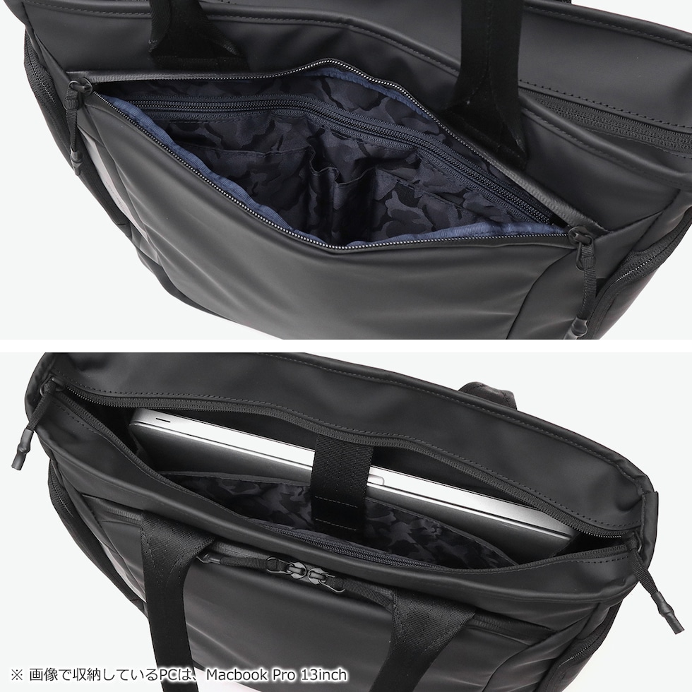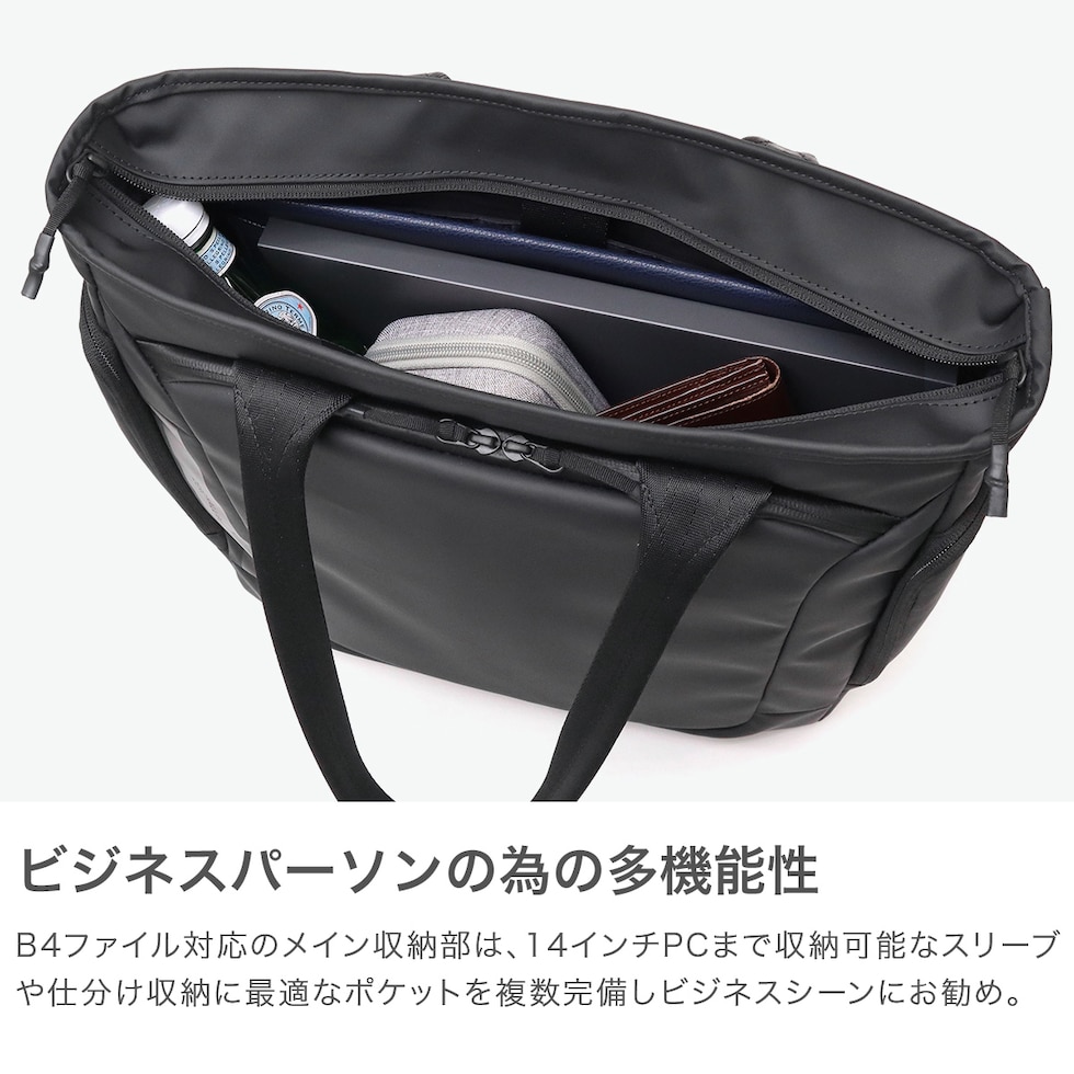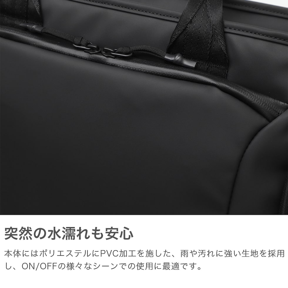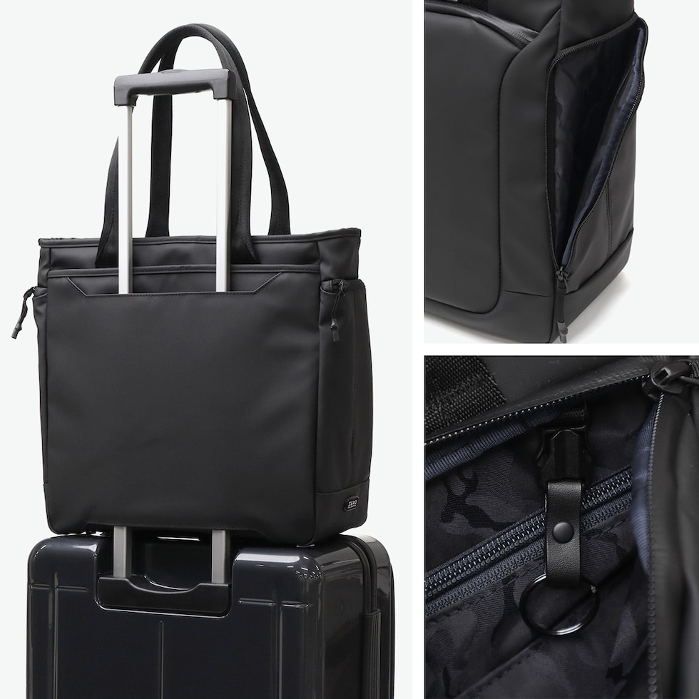 ZFBシリーズのマイナーチェンジモデル『ZFB 2』シリーズのトートバッグ。本体にはポリエステルにPVC加工を施した雨や汚れに強い生地を採用し、ON/OFFの様々なシーンでの使用に適しています。シンプルなフェイスデザインと、PCや書類に加え小物などを機能的に収納できる内装仕様が特徴。キャリーオン機能やオーガナイザーポケットなど、ビジネスシーンに欠かせない機能性が快適な移動をサポートします。
