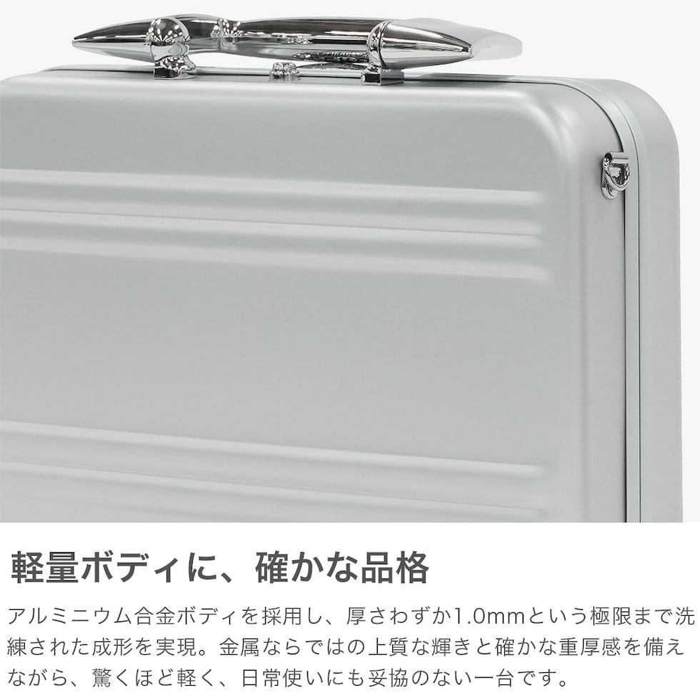 軽快な機能を装備 ゼロハリバートンの原点、月面着陸の伝説を支えたアルミ合金を継承した「Small Aluminum ATT」のミニアタッシュケース。わずか1.0mm厚の精緻な成形により、重厚な光沢と驚きの軽さを両立しました。ミニマルかつ機能的な内装はガジェット類を美しく整理でき、付属の牛革ベルトで2WAY使用も可能。伝統の堅牢性と現代のミニマルな美学が融合した、ビジネスを格上げする次世代のケースです。 |