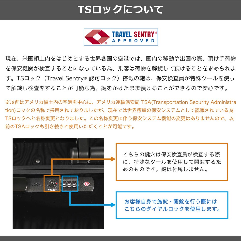 | <購入前にご確認ください> ・メーカーの意向により、付属品の収納袋や箱、製品の仕様やデザインは予告なく変更となる場合がございます。 ・下記による返品・交換はお受けすることができませんので、予めご了承ください。 └ 製品の性質上による細かいキズや塗装ムラ、気泡などがある場合。 └ 配送用の段ボールにキズ、汚れ、破損がある場合。 ・エキスパンダブル機能付きの製品は、マチ拡張時の3辺の和が機内持ち込みサイズ、預け入れ無料サイズを超える場合がございます。また、航空会社や飛行機の機種などによって規定が異なりますので、予めご確認の上お求めください。 ※機内持ち込みサイズ目安表はこちら ・摩擦・水濡れ・日焼けなどにより、色落ち・色褪せが生じる場合があります。 また、製品と衣類の接触により、相互に色移りする場合がございます。 ・柄の位置やカラーバランスなどは、生地の裁断や製造過程、素材の特性により画像とは異なる場合がございます。商品をお選びすることはできませんので、予めご了承ください。 ・極力実物に近い色味を再現しておりますが、モニター等の条件により画面上と実物では色味が異なって見える場合がございます。 |