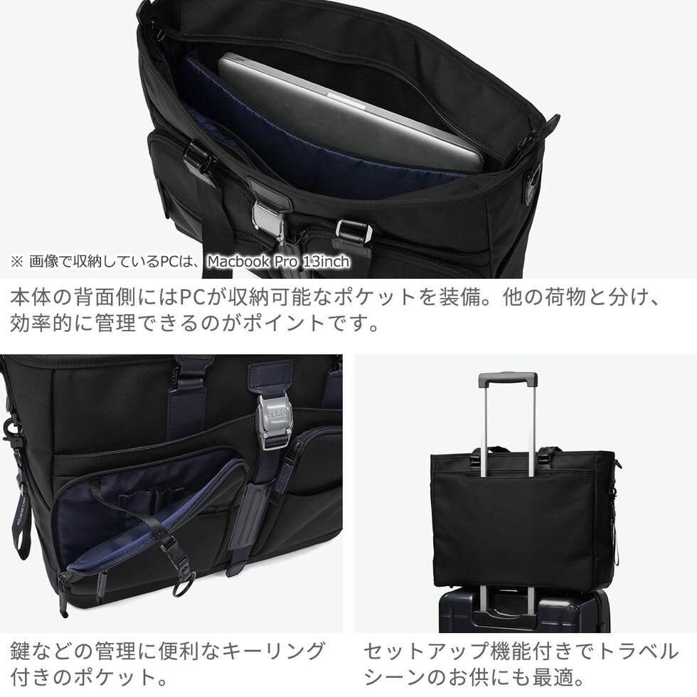 大人のためのB4トート 洗練されたデザインと優れた耐久性を兼ね備えた、大人のためのカジュアルシリーズ『ZLM』のB4トートバッグ。強靭なコーデュラバリスティックナイロンをベースに、アルミ素材のバックルや牛革パーツなど上質な素材を融合させました。優れた収納力に加え、静音性を高めた牛革巻きの引手など細部まで実用性を追求。ビジネスから旅先まで大人の日常をクラスアップさせる万能なアイテムです。 |