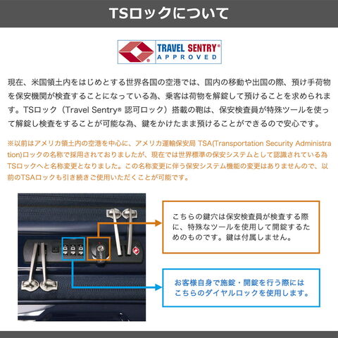 | TSAロック | あり ※TSAロックについて |
