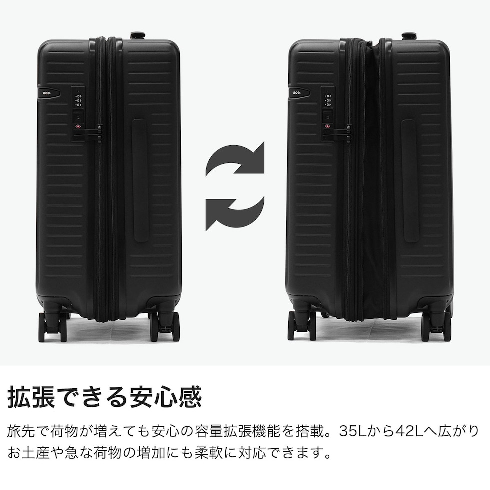【正規品10年保証】 エーストーキョー スーツケース 機内持ち込み ace.TOKYO ブランド キャリーケース 4輪 静音 キャスターストッパー 拡張機能 拡張 TSAロック 小さめ 35L 42L 旅行 3~5泊 ウィーベルZ 09211