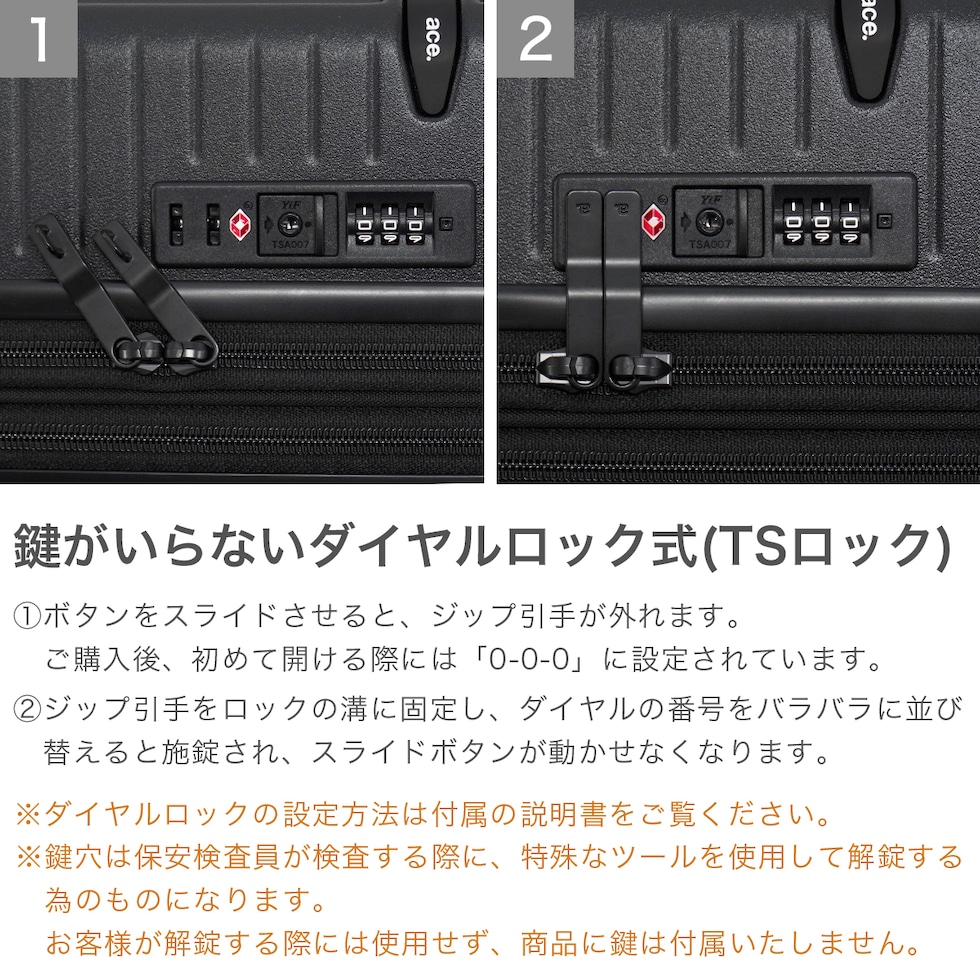 | TSAロック | あり ※TSAロックについて |