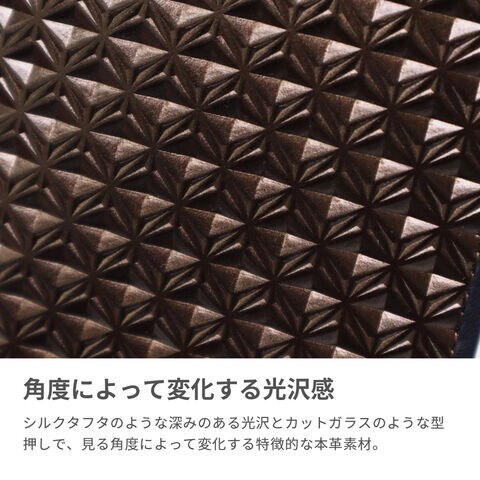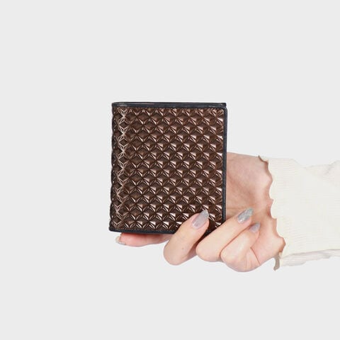 | 洗練された魅力を放つ 深みのあるデザイン 人気シリーズ『CARATI/カラーティ』から登場した二つ折り財布です。シルクタフタのような深い光沢とカットガラスのような型押しで、見る角度によって変化する美しい色合いが特徴。加えて、ファスナーやベルトがないスッキリとしたデザインが洗練された印象を与えてくれます。 |