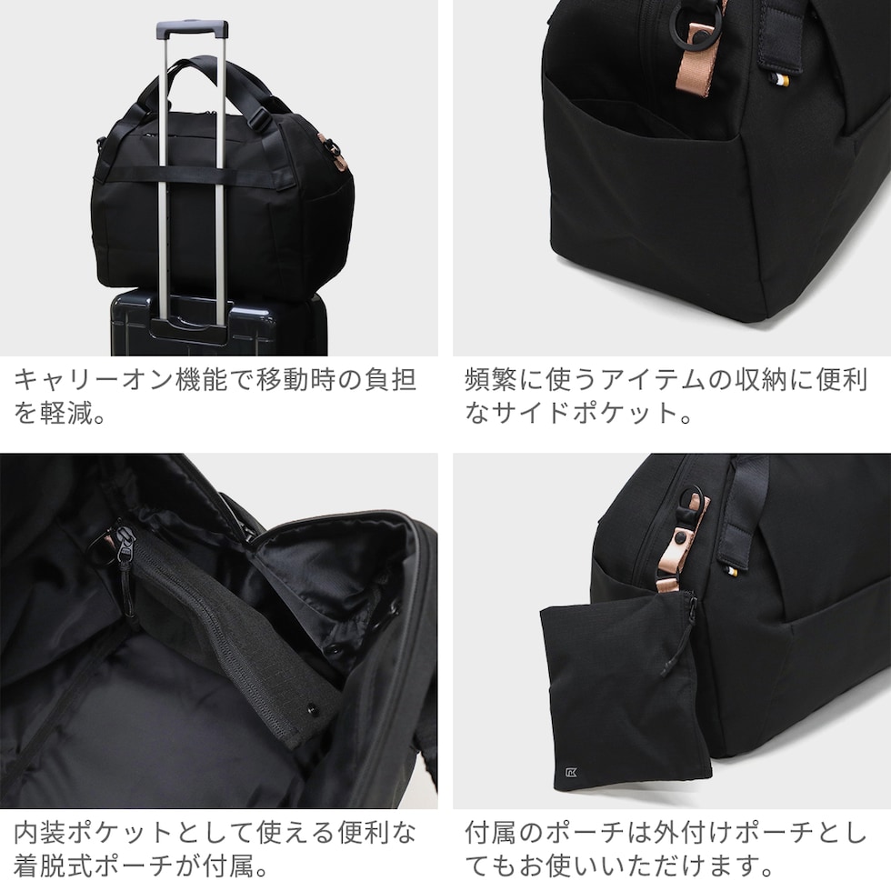 | 軽さと大容量、 旅をもっと自由に。 都市建築に着想を得た、幾何学的デザインのボストンバッグ。35Lの大容量で日帰りや一泊旅行に最適です。撥水加工やキャリーオン機能付きで実用性も抜群。シーンに応じて肩掛け・斜め掛け・手持ちが可能で、男女問わず使えるユニセックスアイテムです。 |
