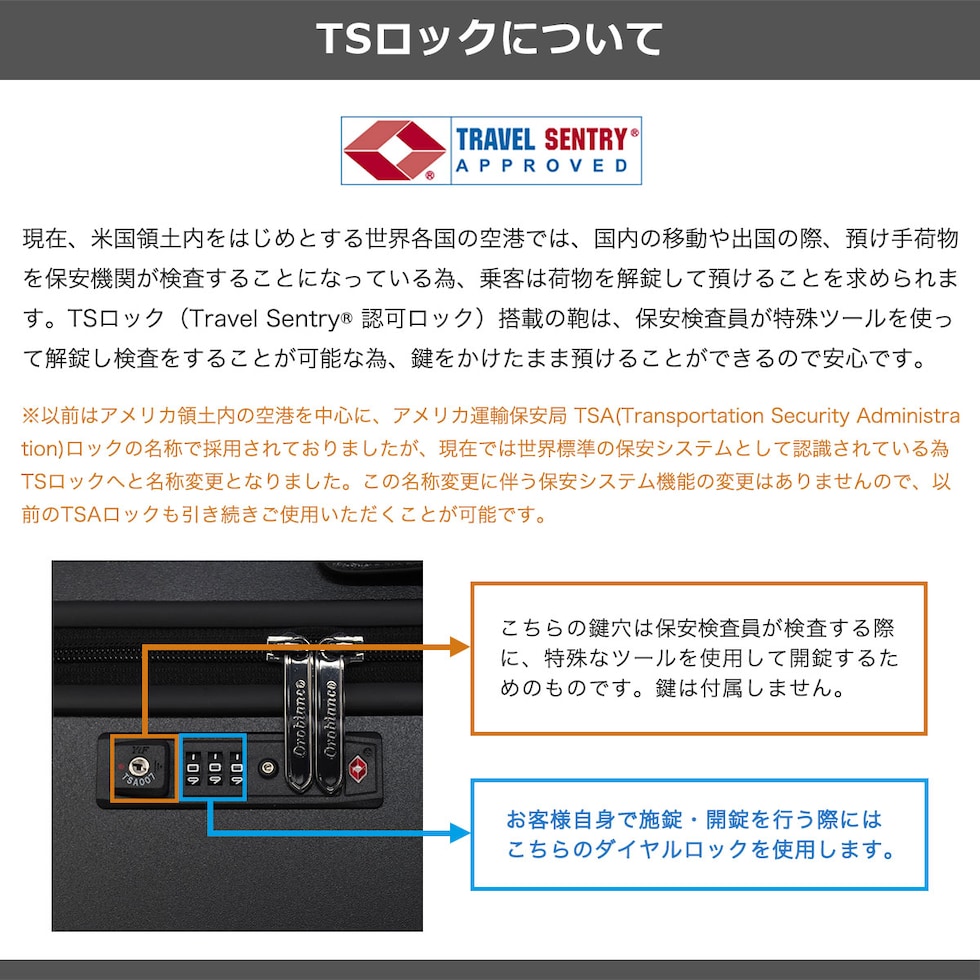 | <購入前にご確認ください> ・メーカーの意向により、付属品の収納袋や箱、製品の仕様やデザインは予告なく変更となる場合がございます。 ・下記による返品・交換はお受けすることができませんので、予めご了承ください。 └ 製品の性質上による細かいキズや塗装ムラ、気泡などがある場合。 └ 配送用の段ボールにキズ、汚れ、破損がある場合。 ・エキスパンダブル機能付きの製品は、マチ拡張時の3辺の和が機内持ち込みサイズ、預け入れ無料サイズを超える場合がございます。また、航空会社や飛行機の機種などによって規定が異なりますので、予めご確認の上お求めください。 ※機内持ち込みサイズ目安表はこちら ・摩擦・水濡れ・日焼けなどにより、色落ち・色褪せが生じる場合があります。 また、製品と衣類の接触により、相互に色移りする場合がございます。 ・柄の位置やカラーバランスなどは、生地の裁断や製造過程、素材の特性により画像とは異なる場合がございます。商品をお選びすることはできませんので、予めご了承ください。 ・極力実物に近い色味を再現しておりますが、モニター等の条件により画面上と実物では色味が異なって見える場合がございます。 |