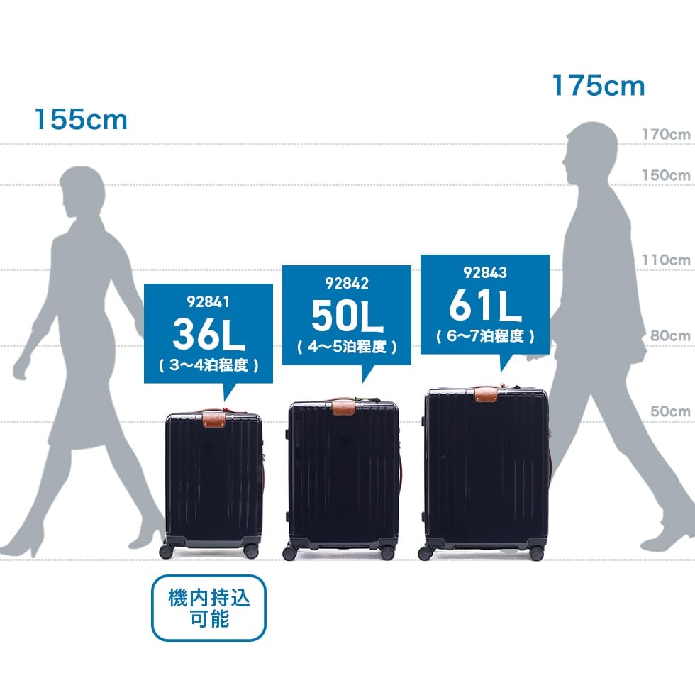 シンプルキャリー 『Orobianco/オロビアンコ』らしい高級感ある本革と鏡面ボディシェルを組み合わせた『シンティラーレ』。こちらは、50L容量のスーツケースです。ボディ素材には、耐衝撃性、耐久性に優れたポリカーボネートを使用。また、キャスターストッパー機能付きで、出張やプライベートで活躍するシンプルで機能的な大人の仕上がりとなっています。 |